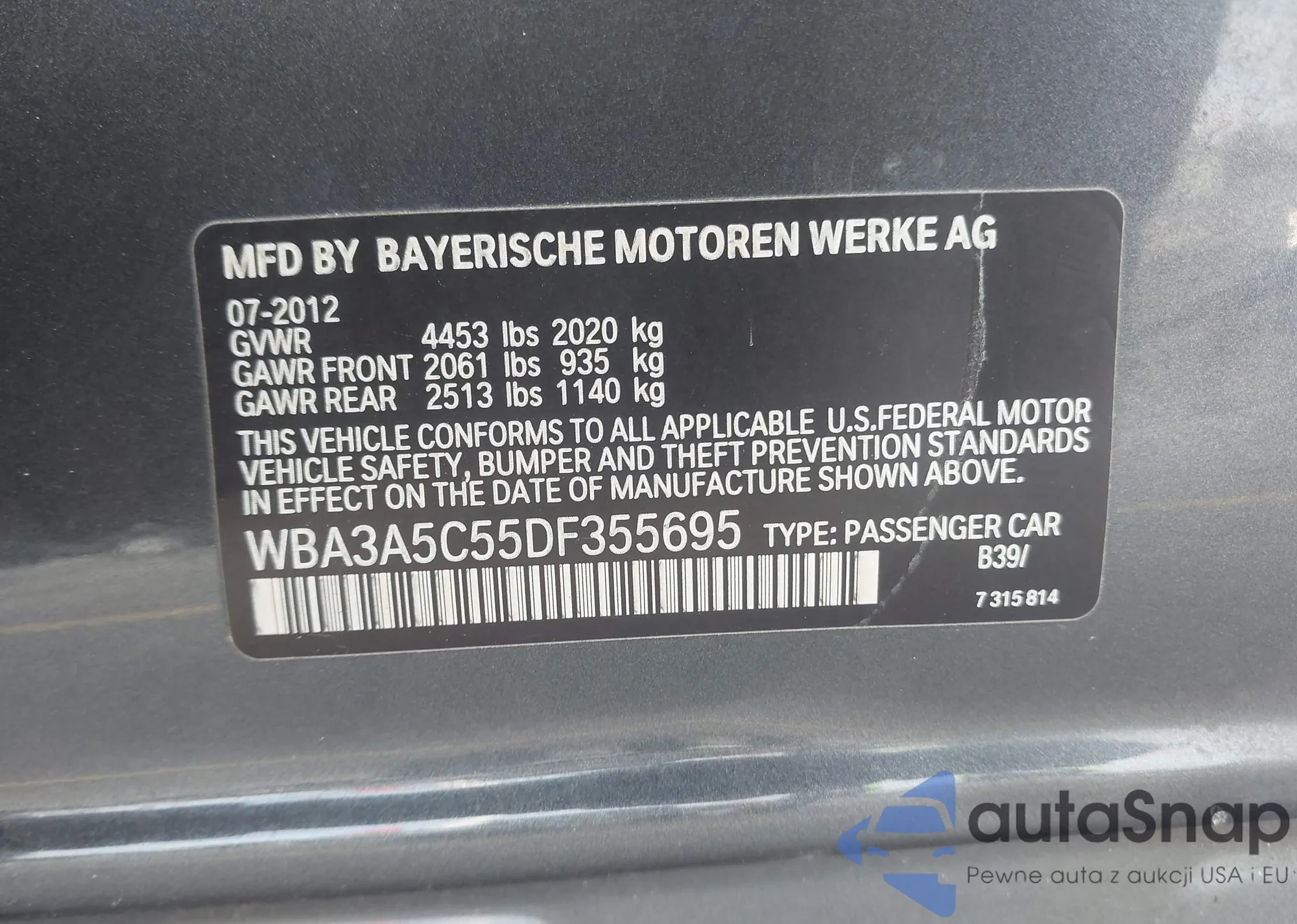 • VIN WBA3A5C55DF355695