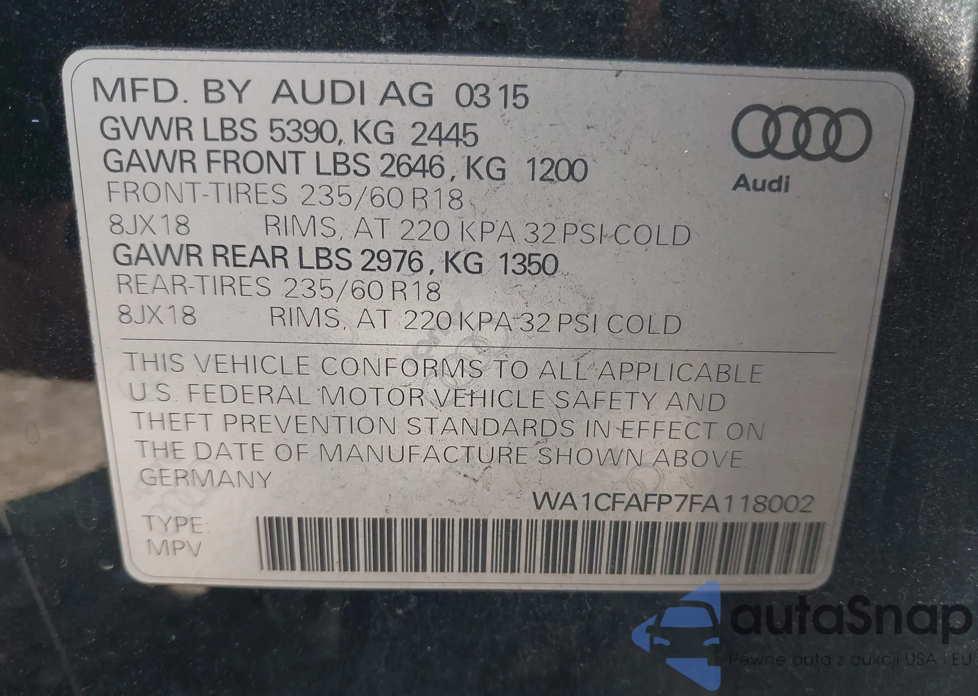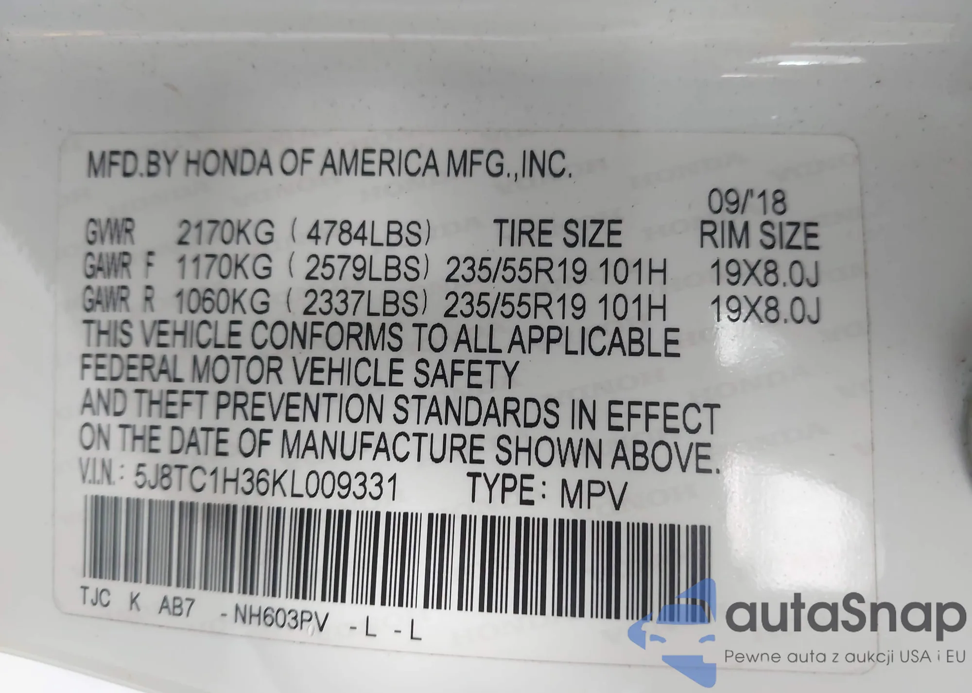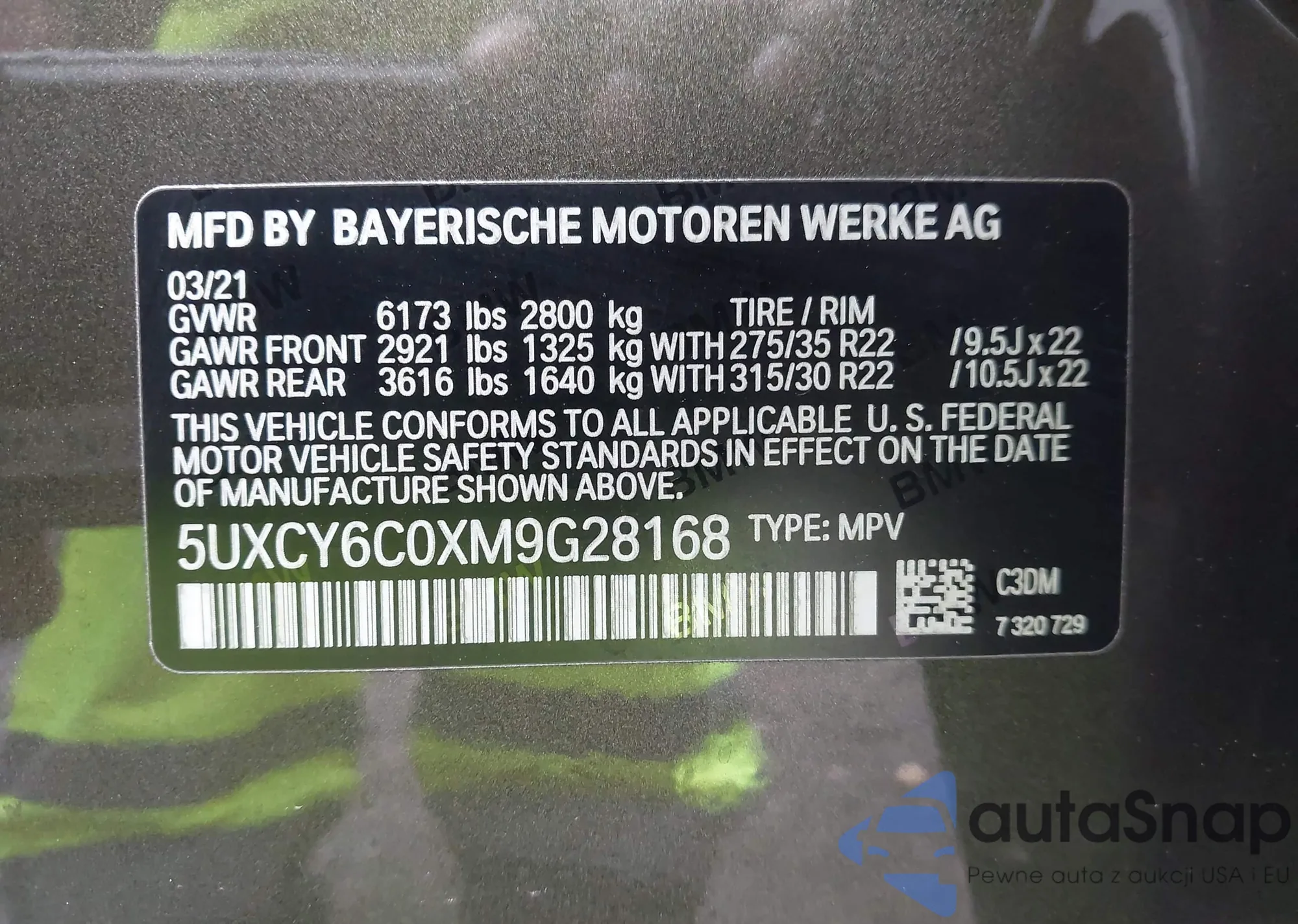 • VIN 5UXCY6C0XM9G28168
