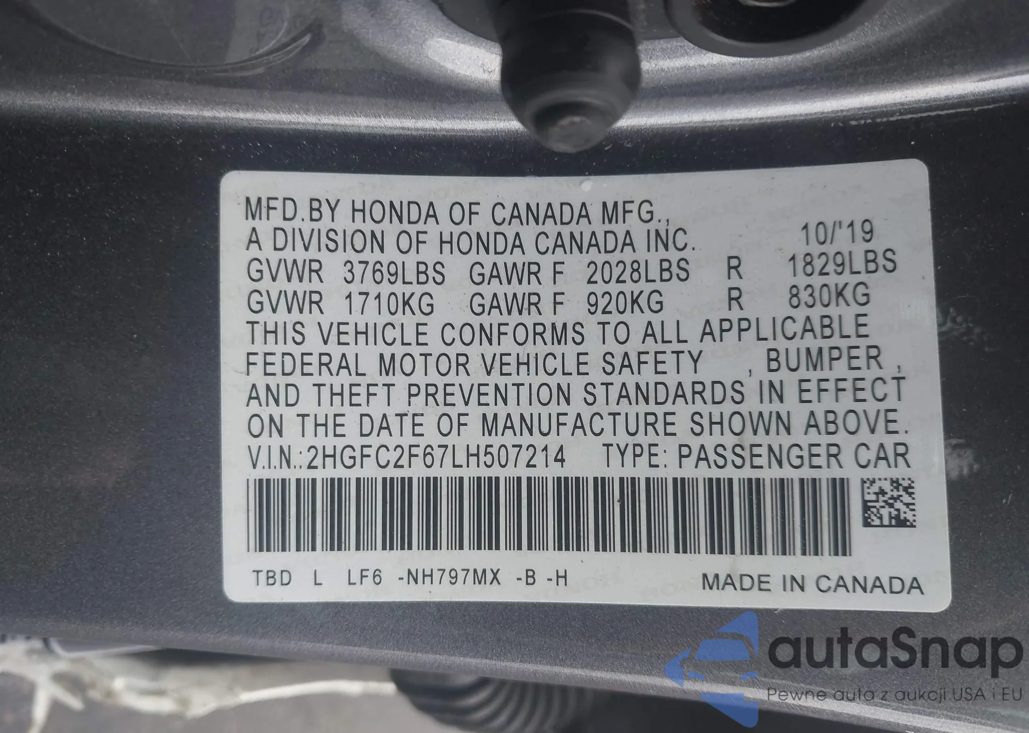 • VIN 2HGFC2F67LH507214