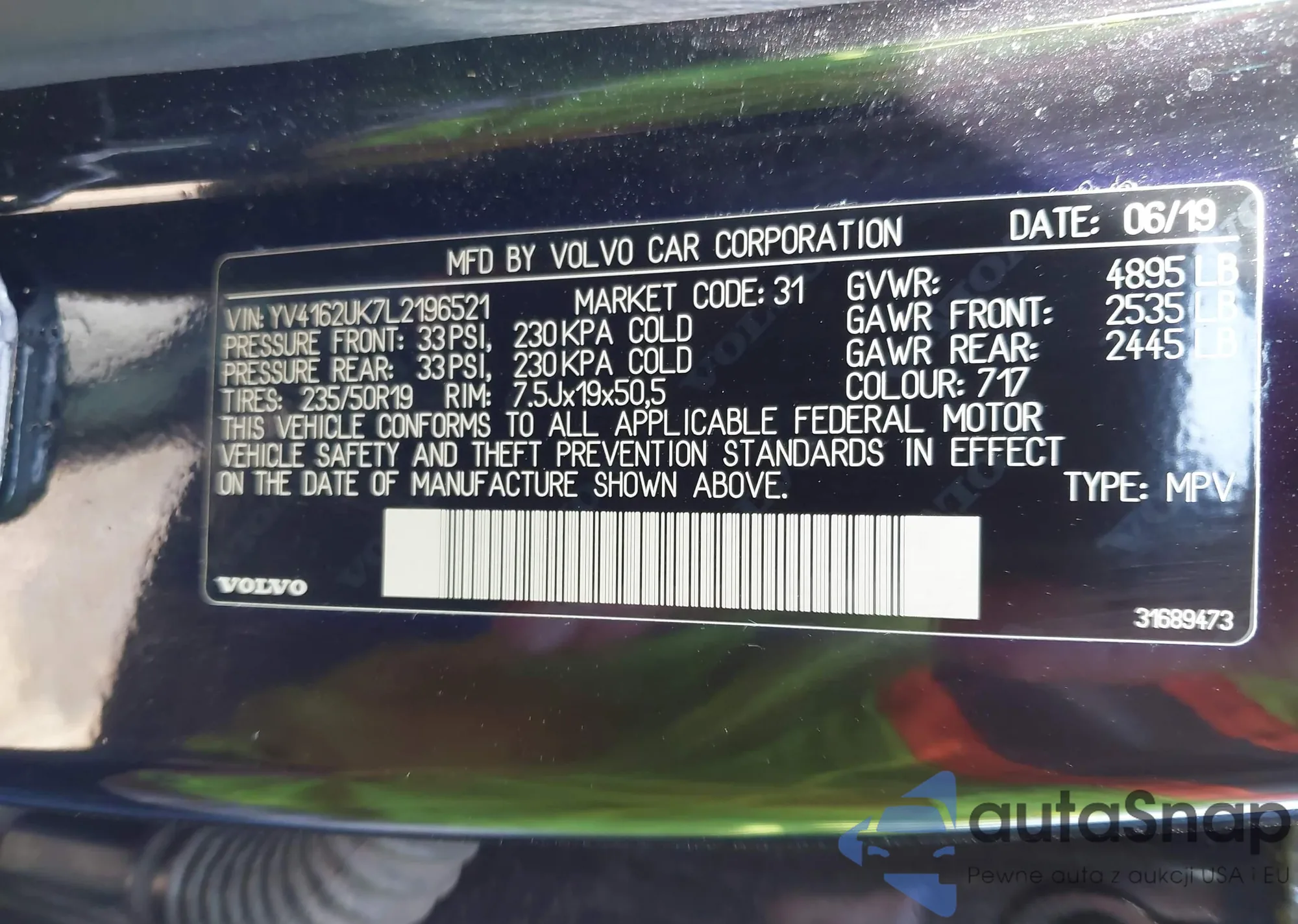 LOT: 42950031 VIN: YV4162UK7L2196521