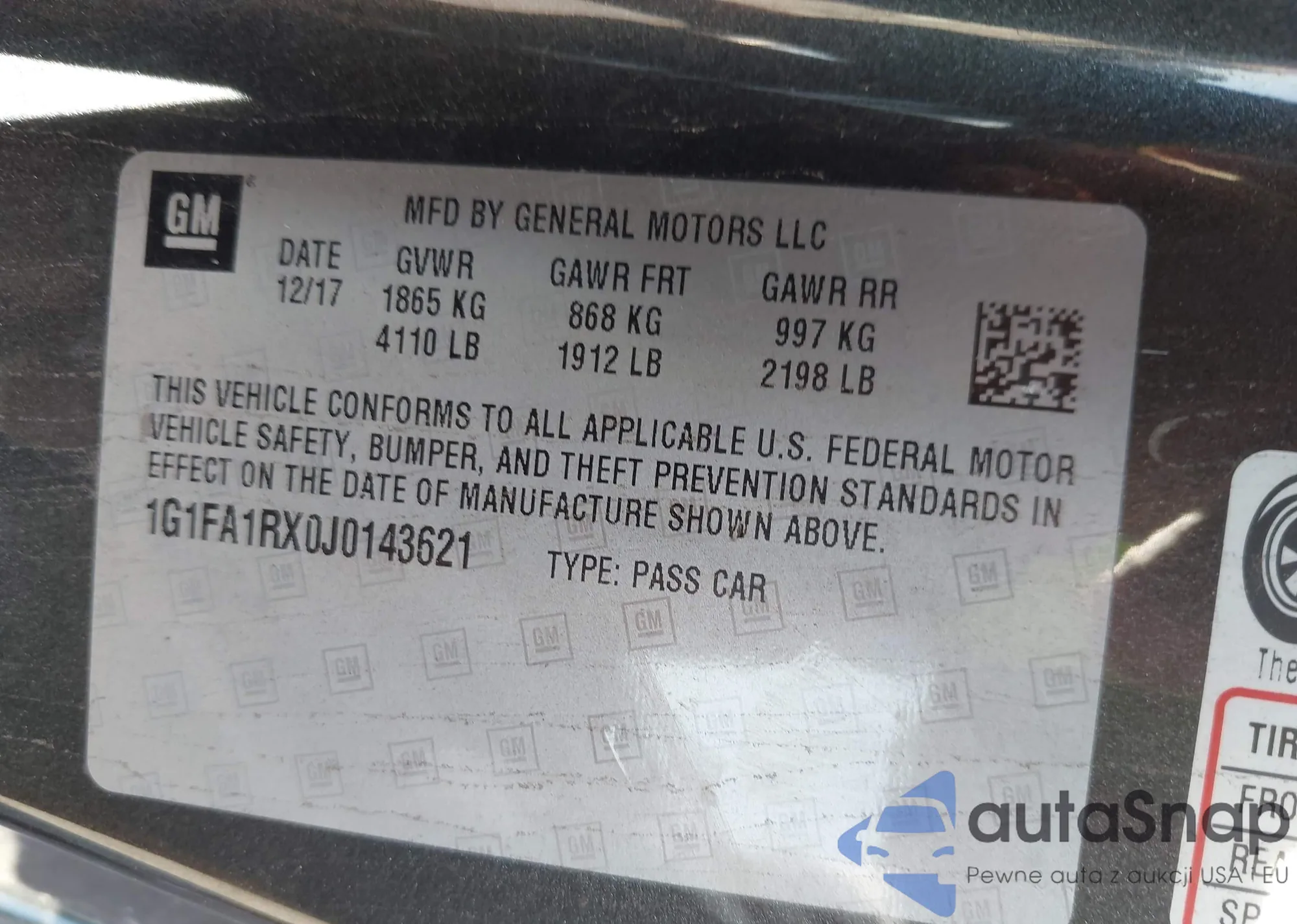 LOT: 42979322 VIN: 1G1FA1RX0J0143621