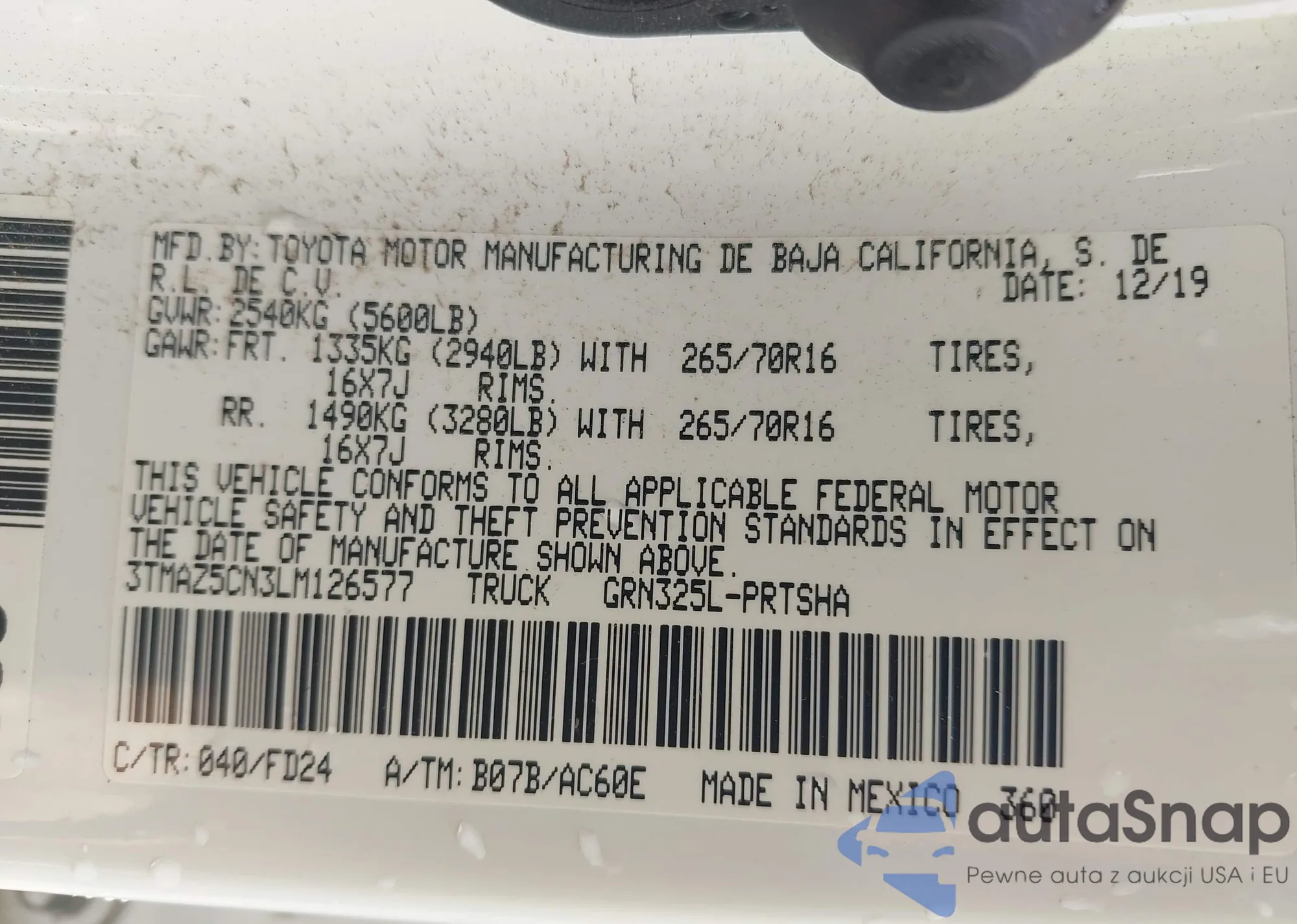 • VIN 5TDKZ3DC6LS032635