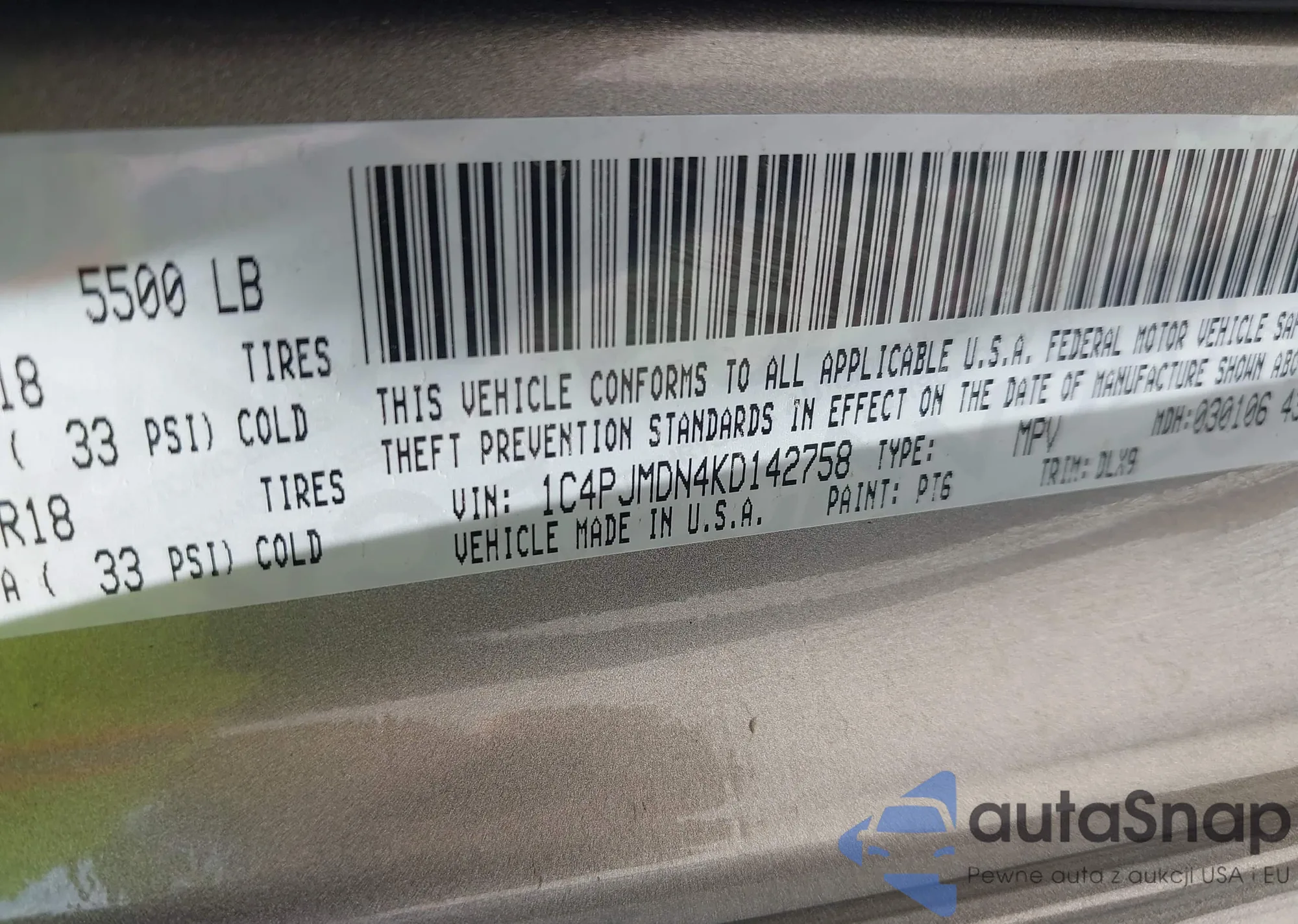 LOT: 42941767 VIN: 5TDKZ3DC6LS032635