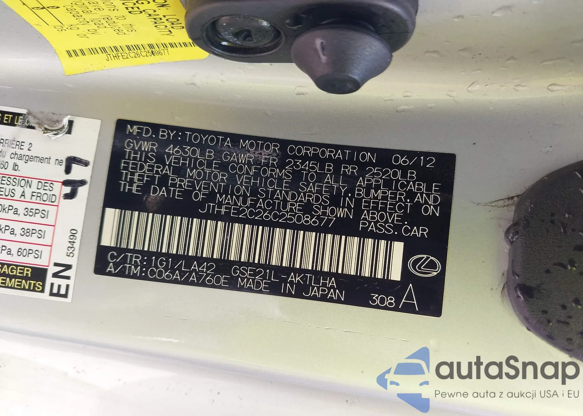 LOT: 43131100 VIN: JTHFE2C26C2508677