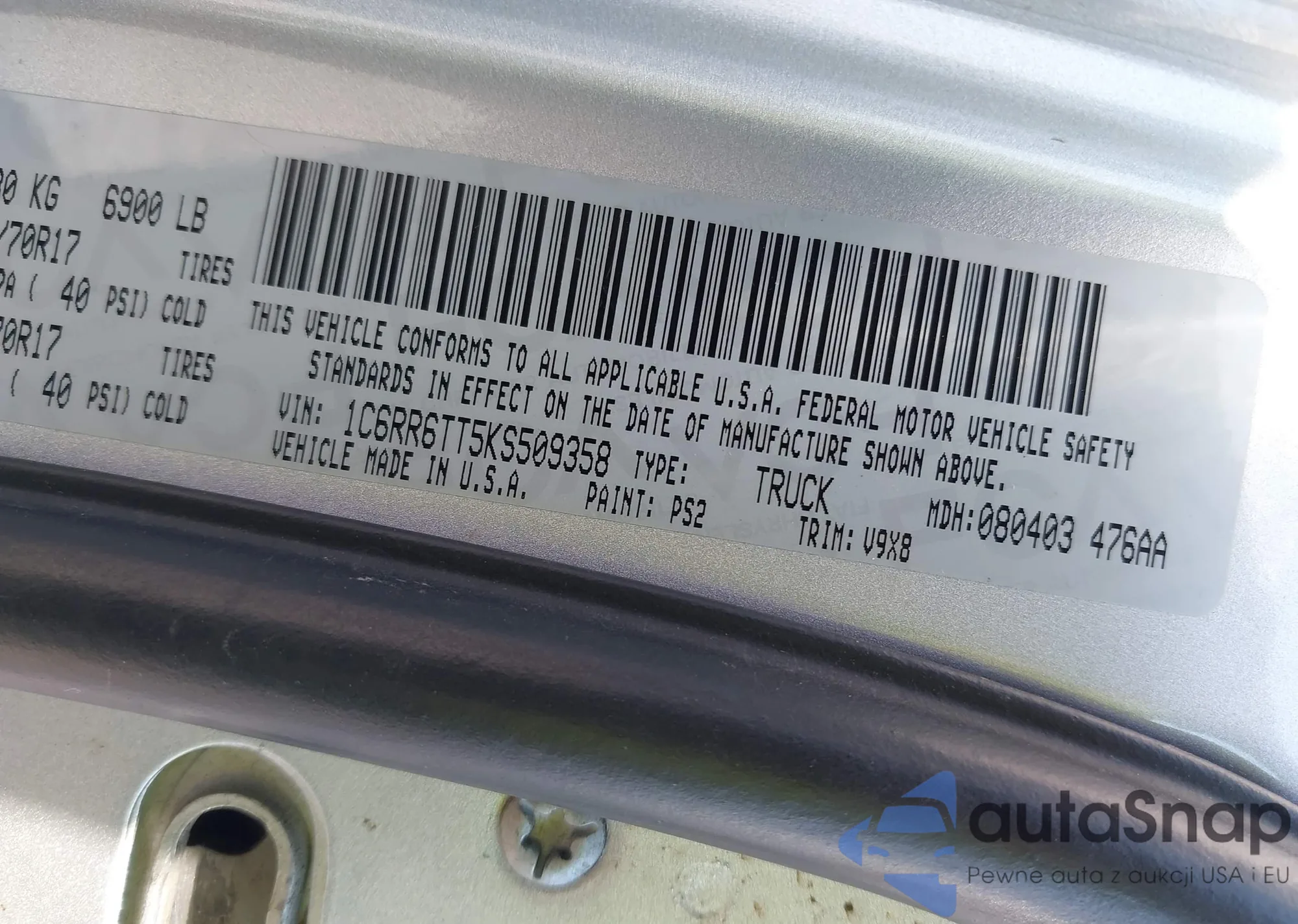 • VIN 1C6RR6TT5KS509358