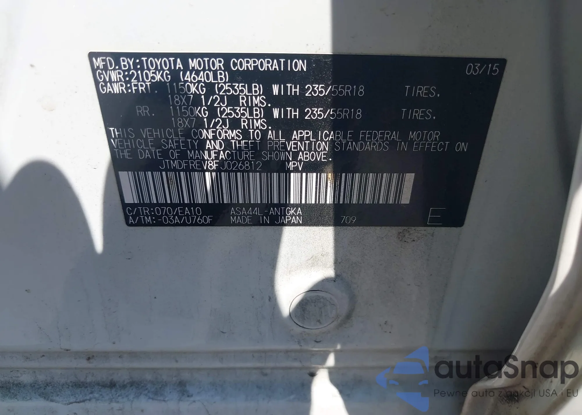 LOT: 43291979 VIN: JA4AR3AU8JU020658
