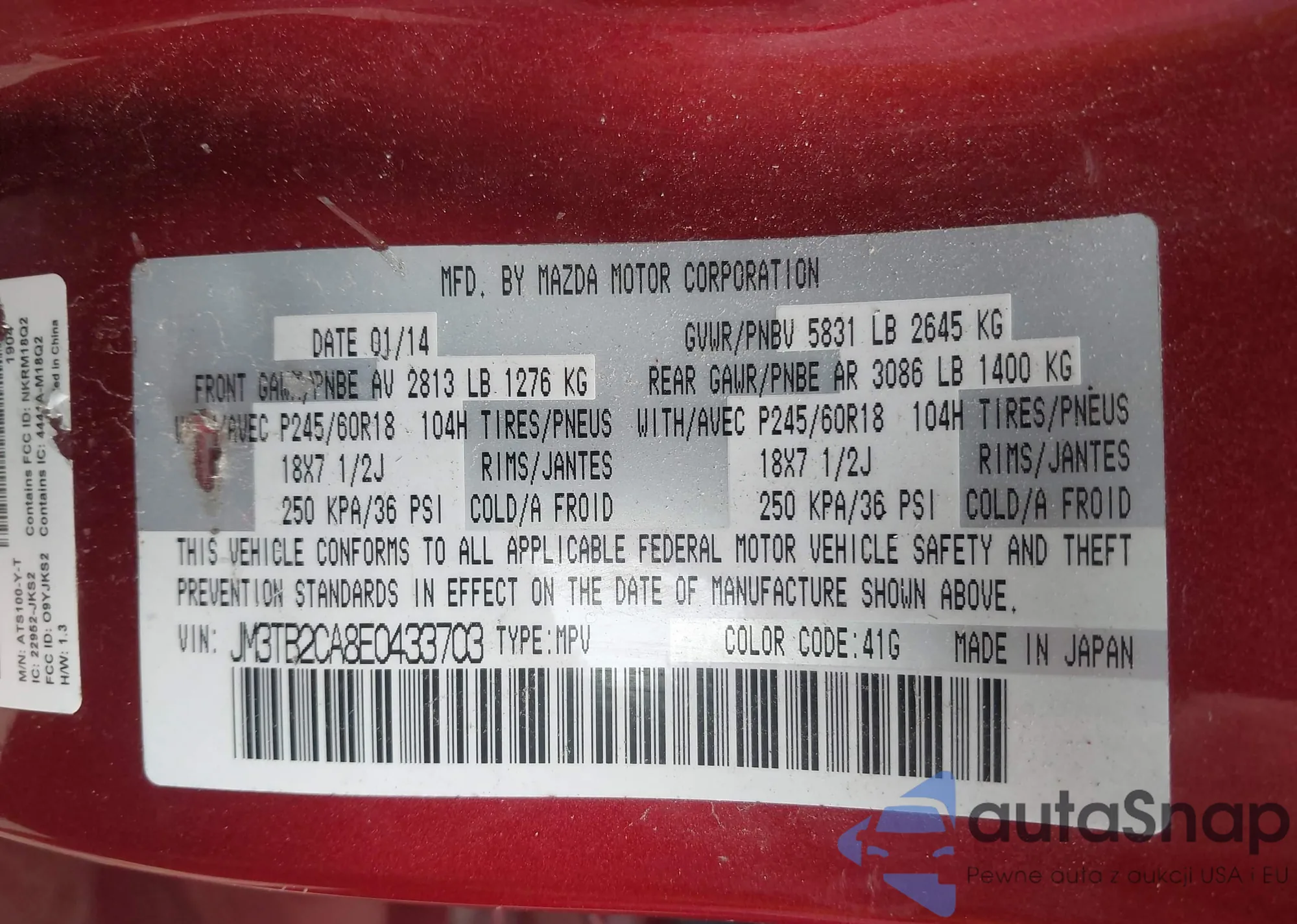 LOT: 43320344 VIN: JM1BK343X81139227