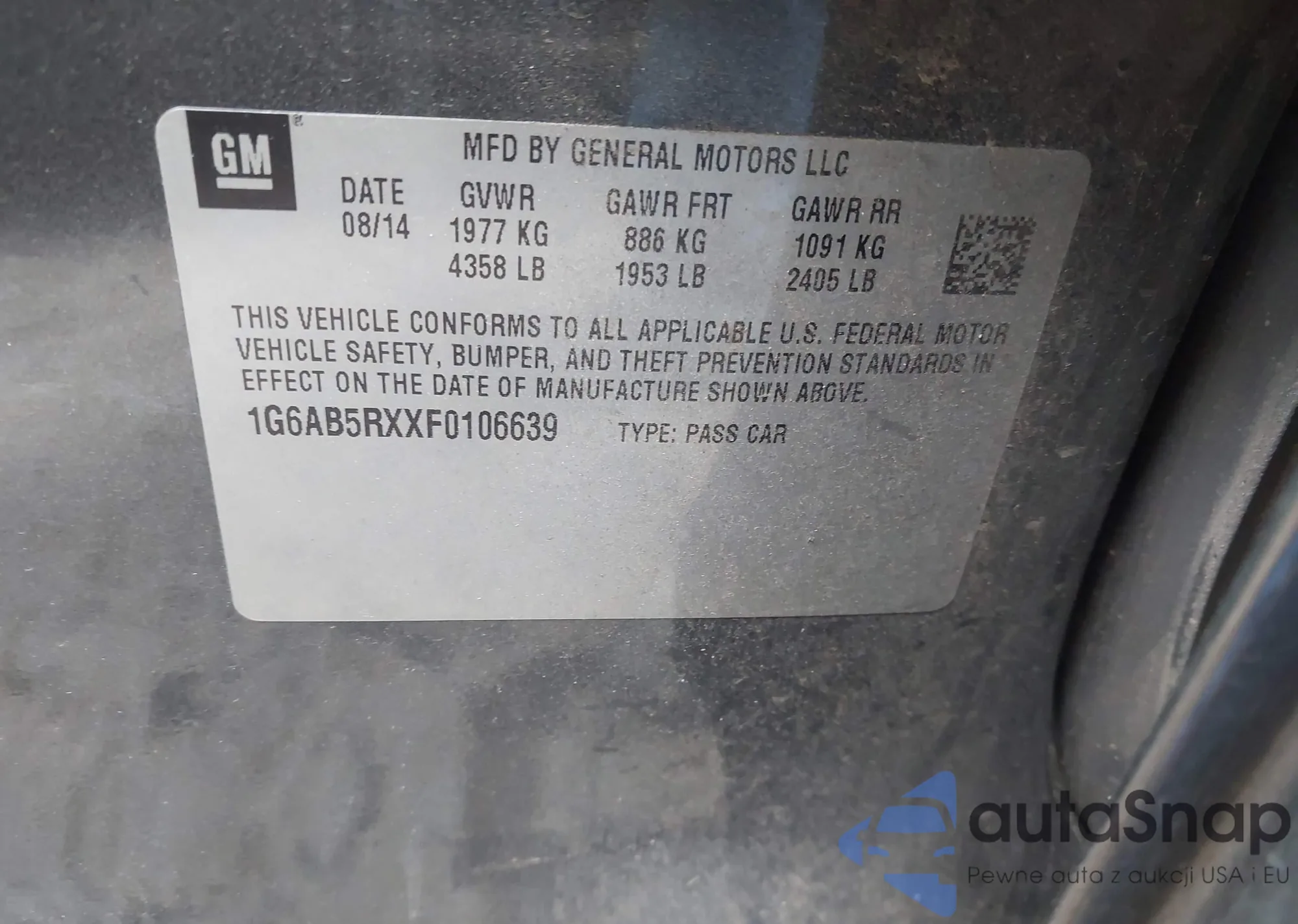 • VIN 1G6AB5RXXF0106639