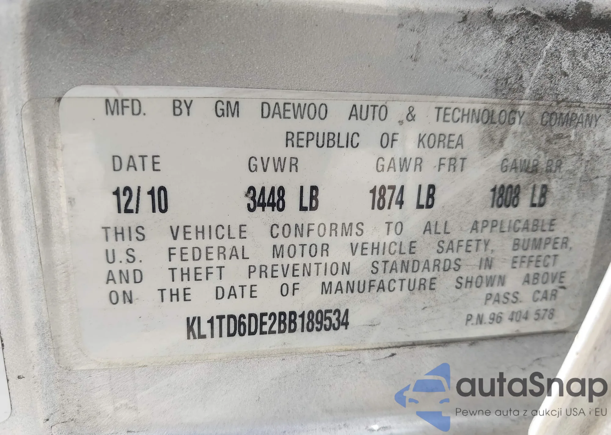 LOT: 43300867 VIN: KL1TD6DE2BB189534