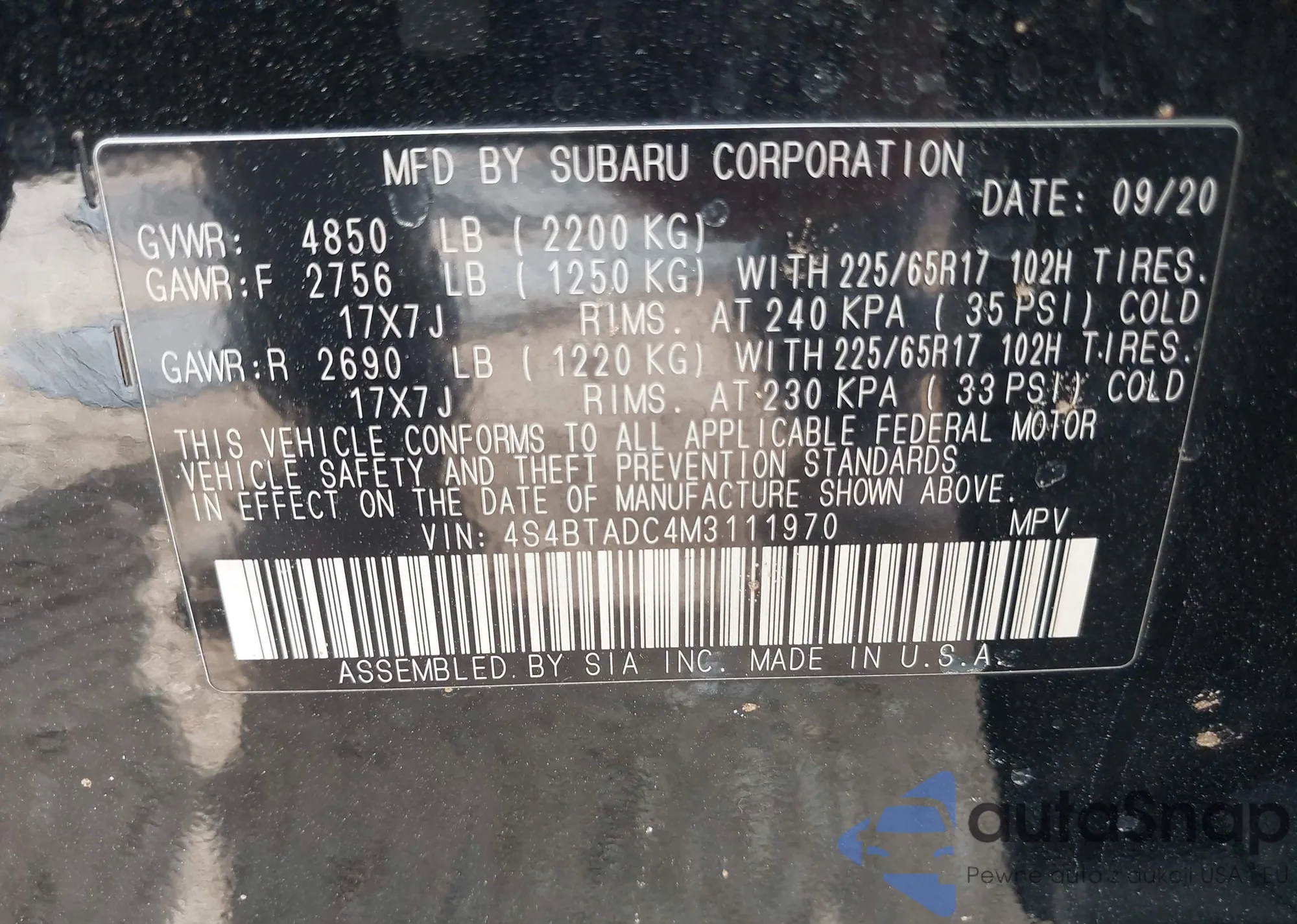 • VIN 4S4BTADC4M3111970