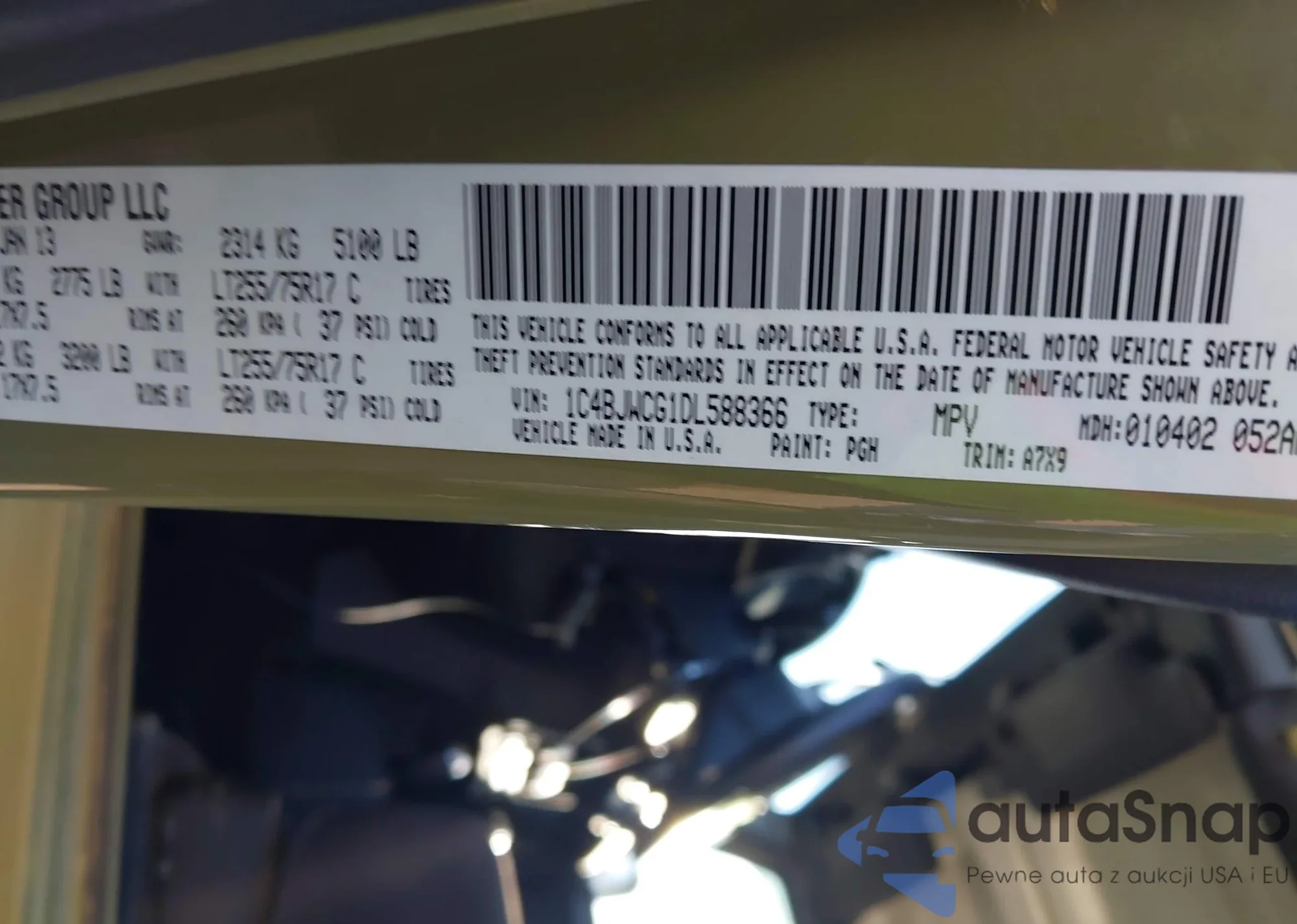 • VIN 1C4HJXDG7KW631750