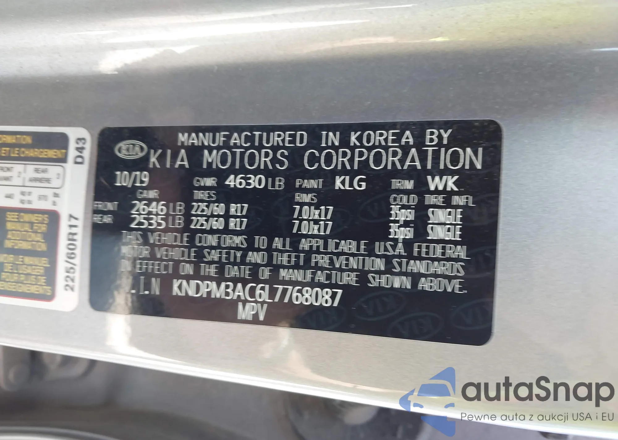 LOT: 43369016 VIN: KNAGM4A78C5289848