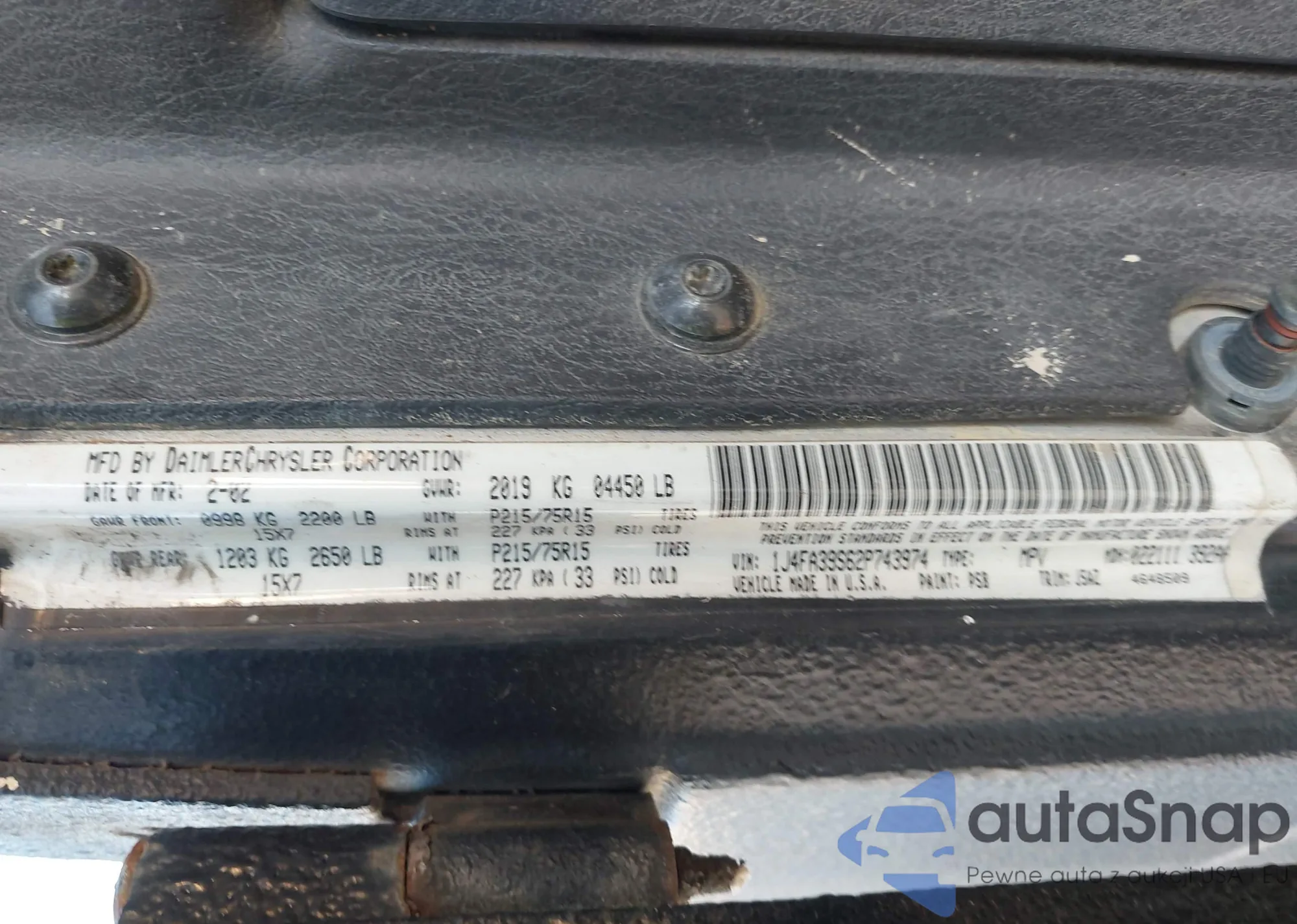 • VIN 1J4FA39S62P743974