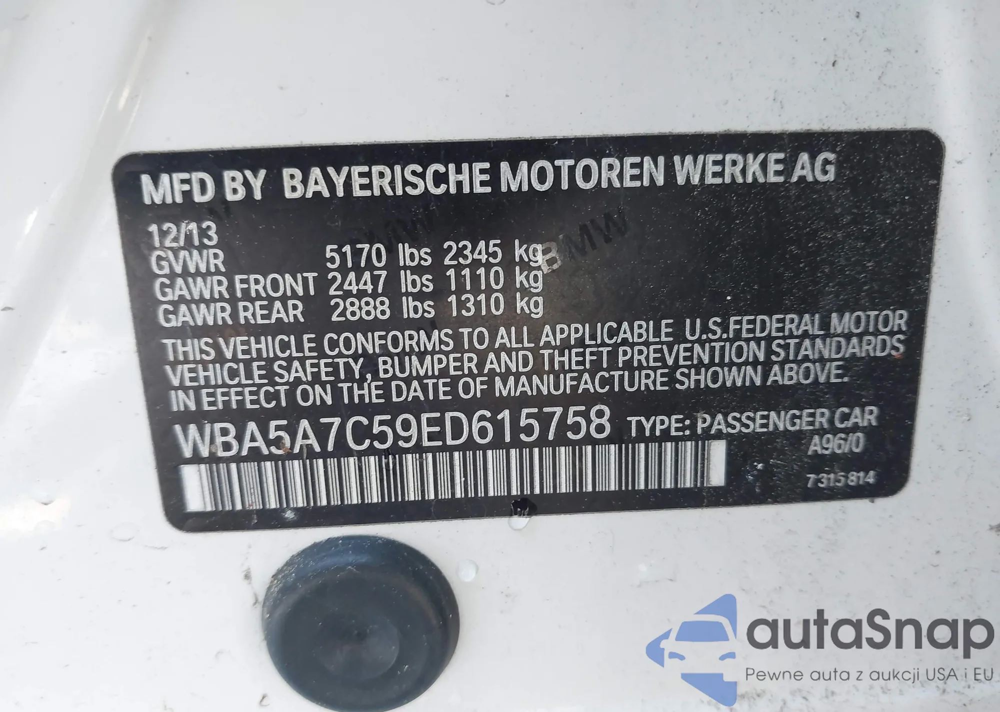 • VIN WBA5A7C59ED615758