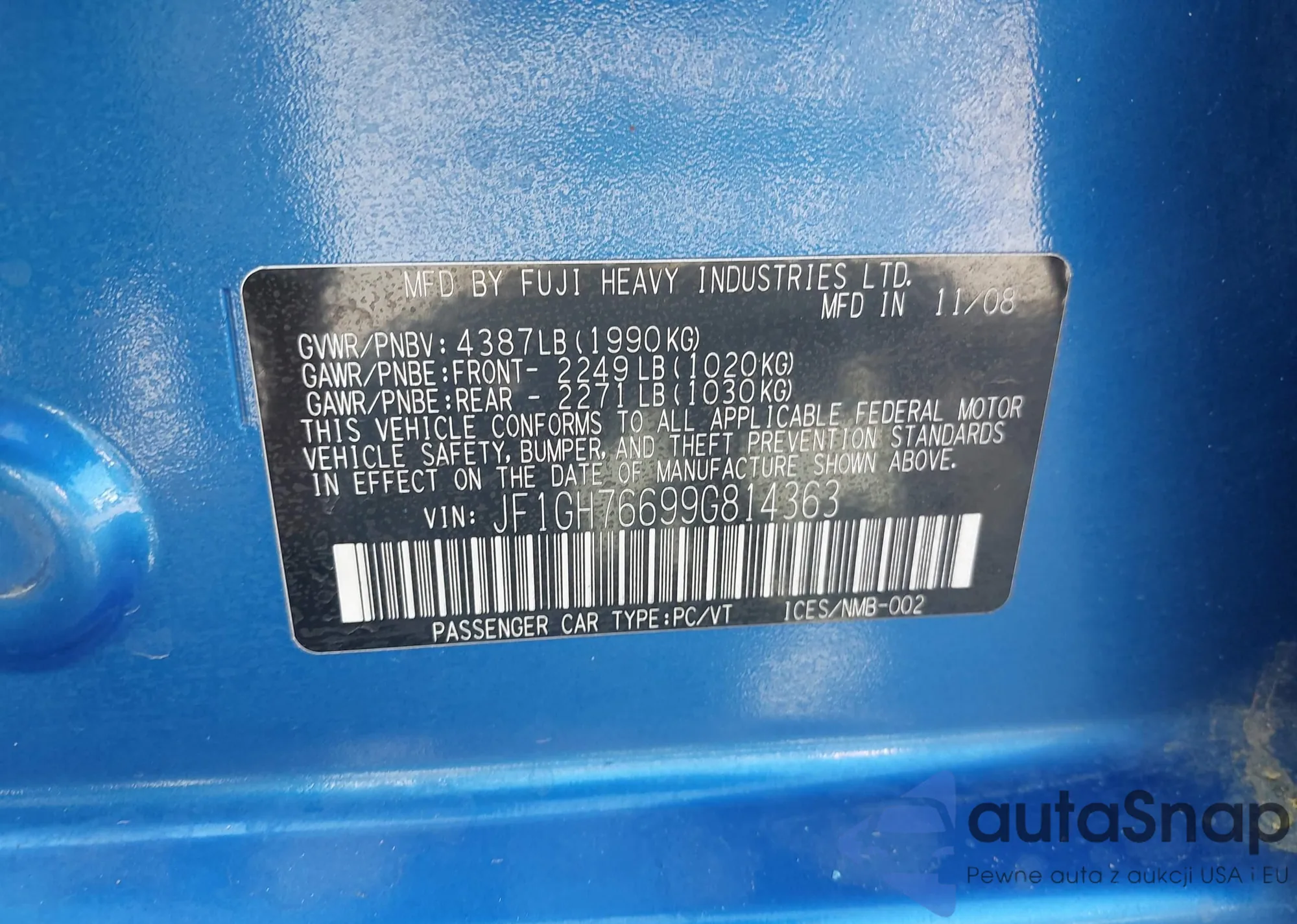 • VIN JF2GTAAC8KH274203