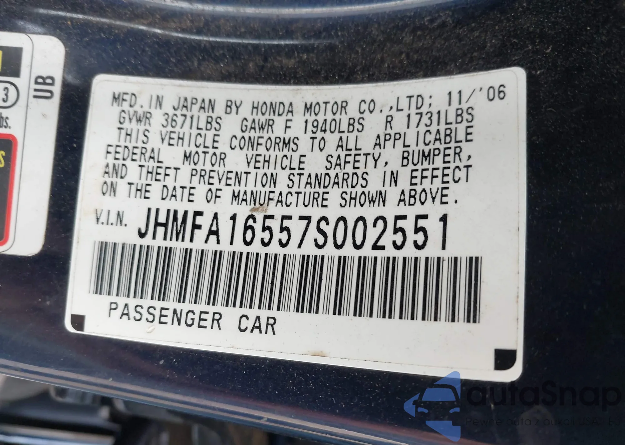 • VIN JHMFA16557S002551