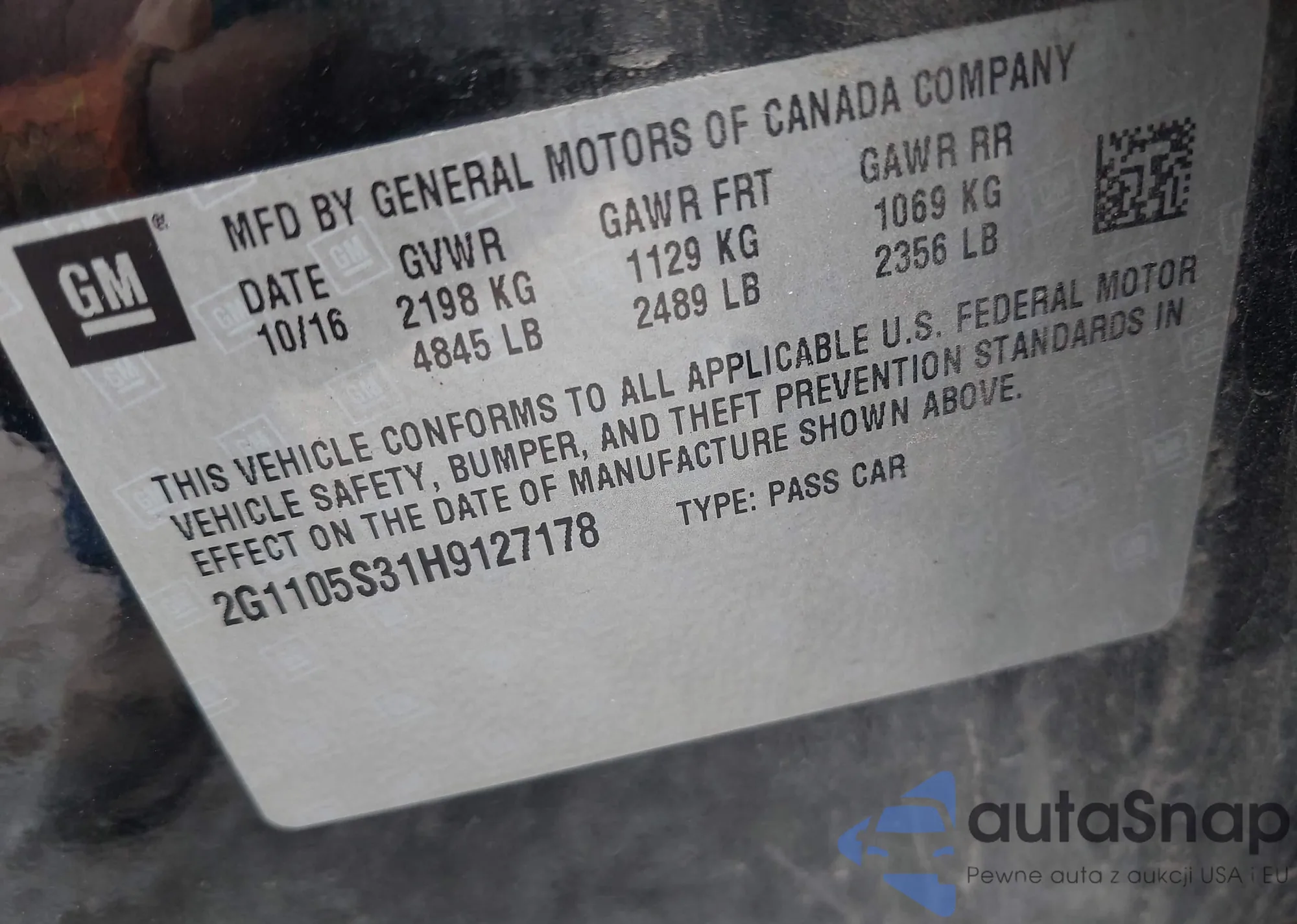 • VIN 1G1ZC5ST6PF158216