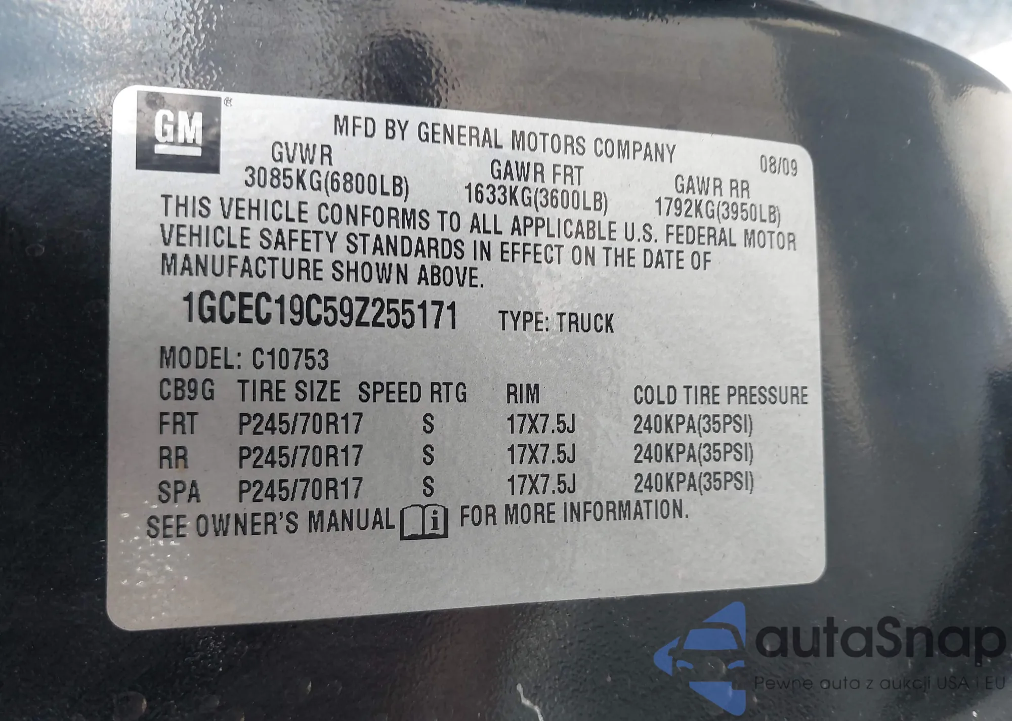 • VIN 1GCEC19C59Z255171