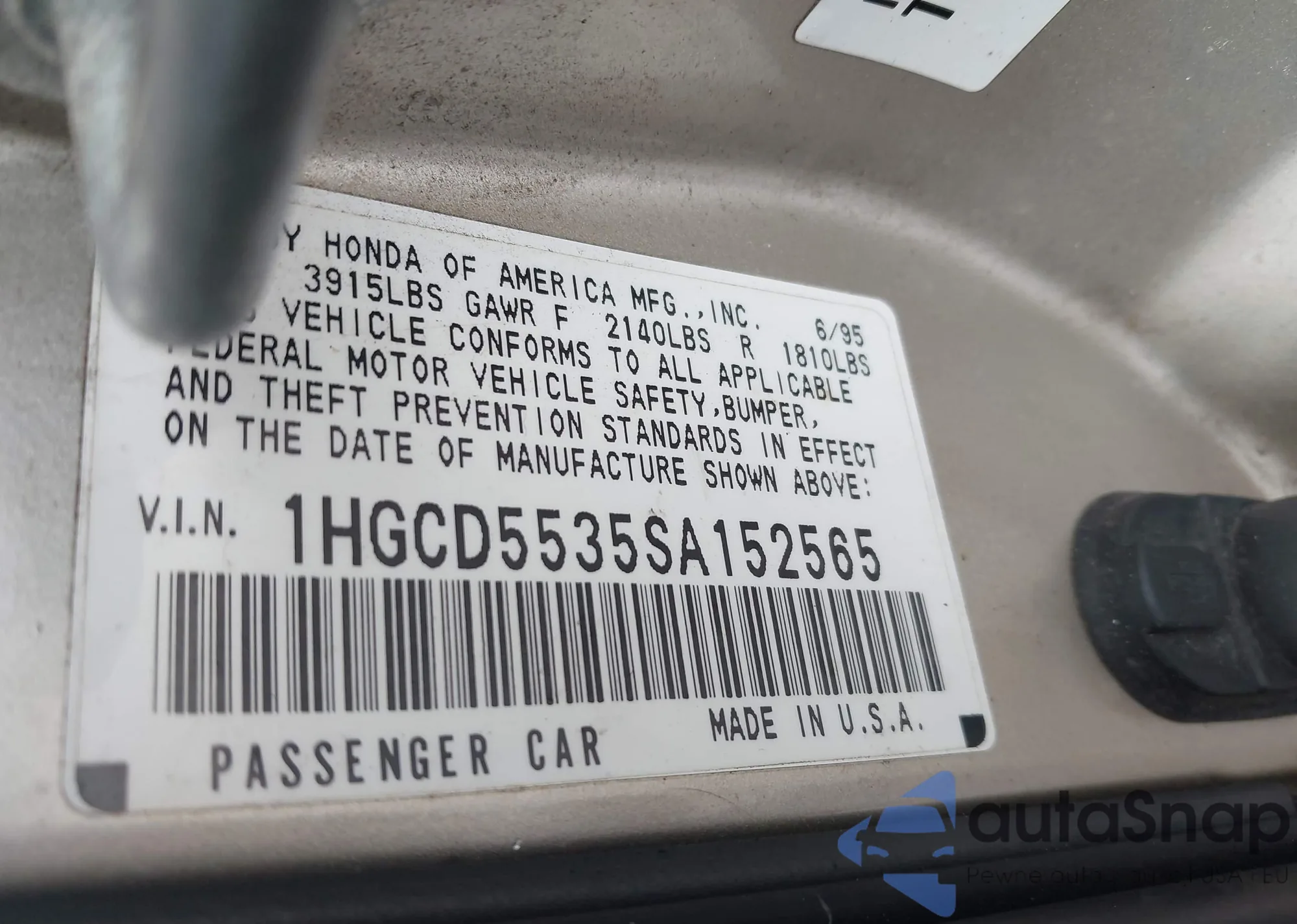 LOT: 43383233 VIN: 1HGCD5535SA152565
