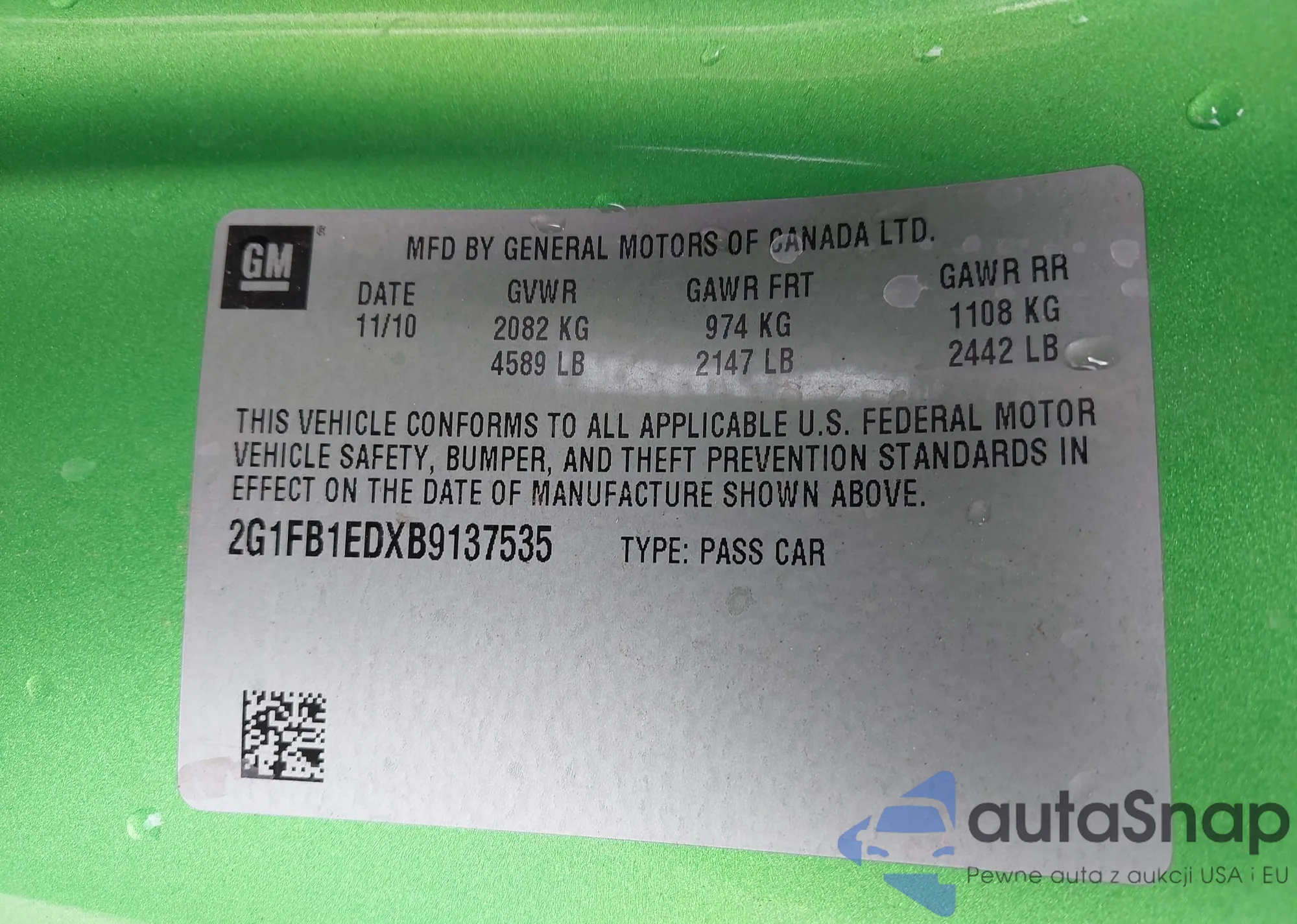 LOT: 43388757 VIN: 2G1FB1EDXB9137535