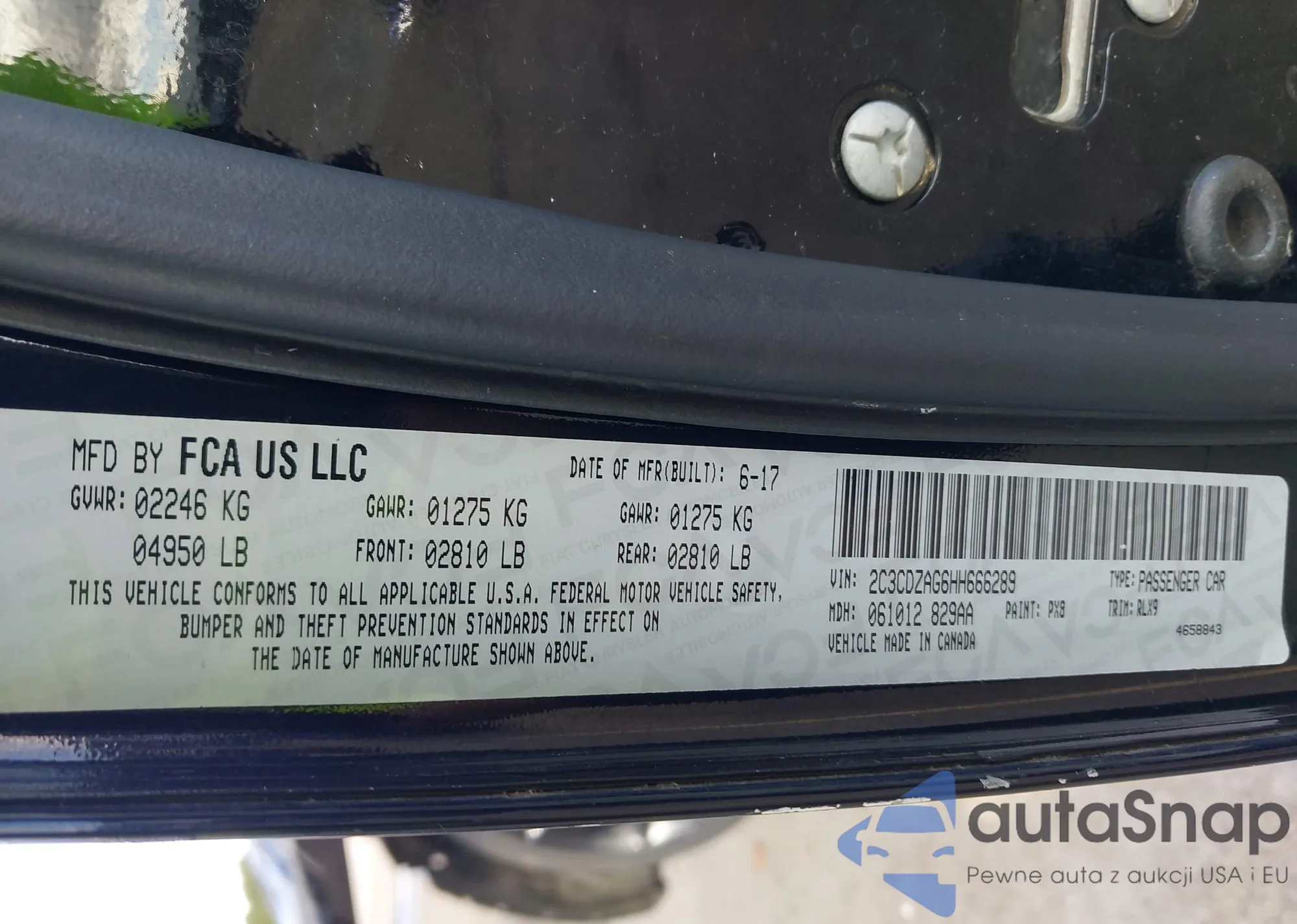 LOT: 43390493 VIN: 2C3CDZAG6HH666289