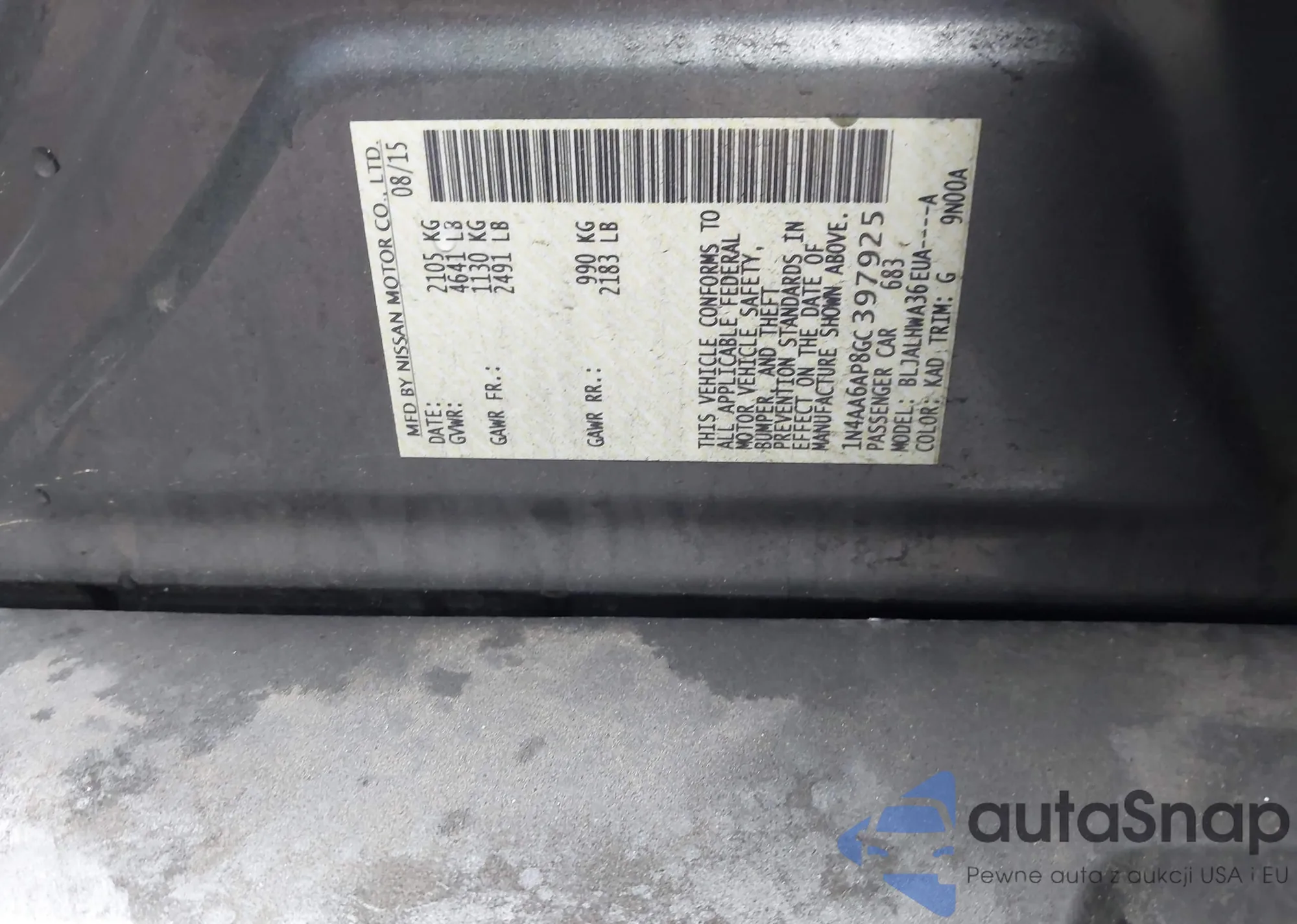 • VIN 1N4AA6AP8GC397925