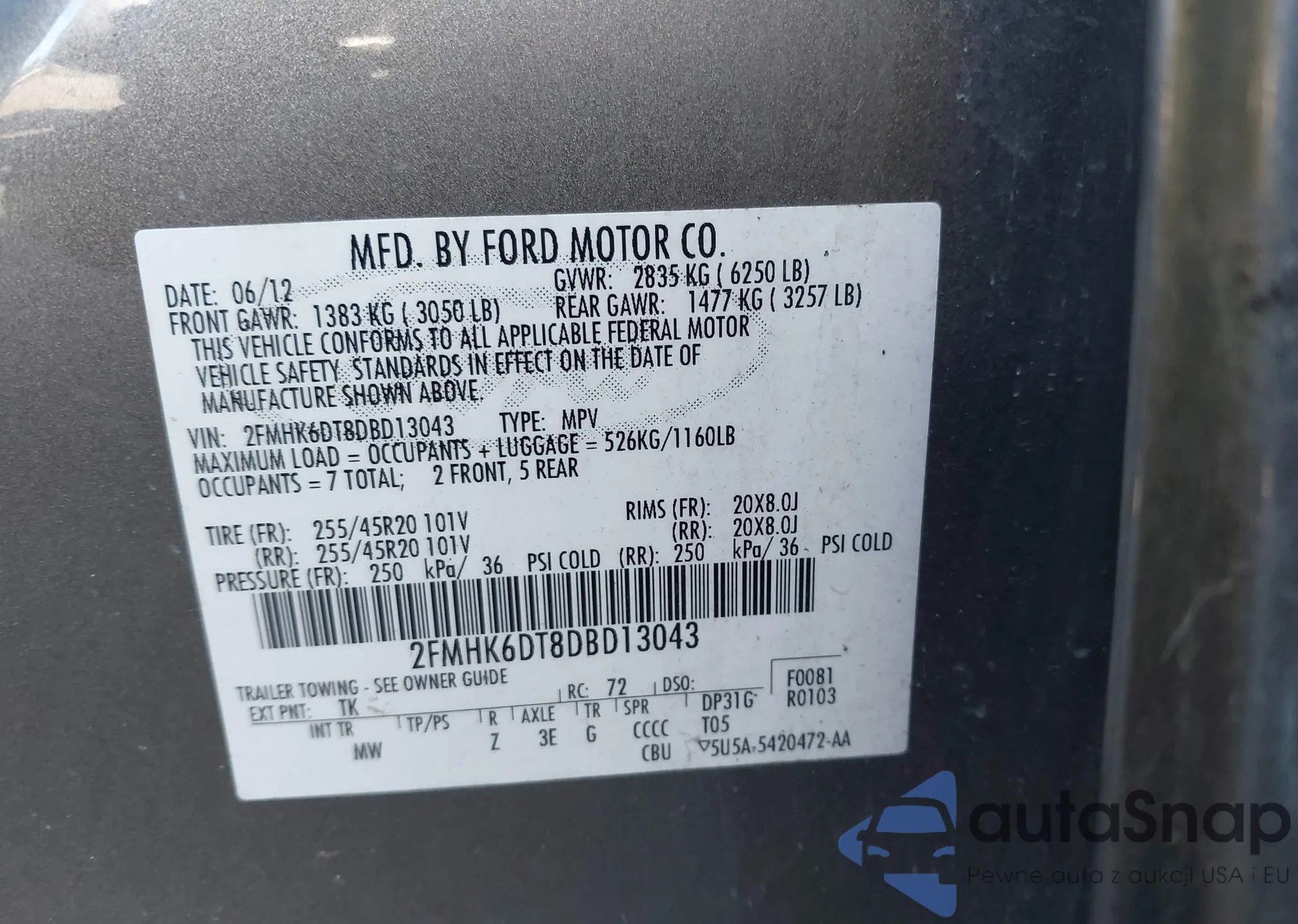 LOT: 43395718 VIN: 2FMHK6DT8DBD13043
