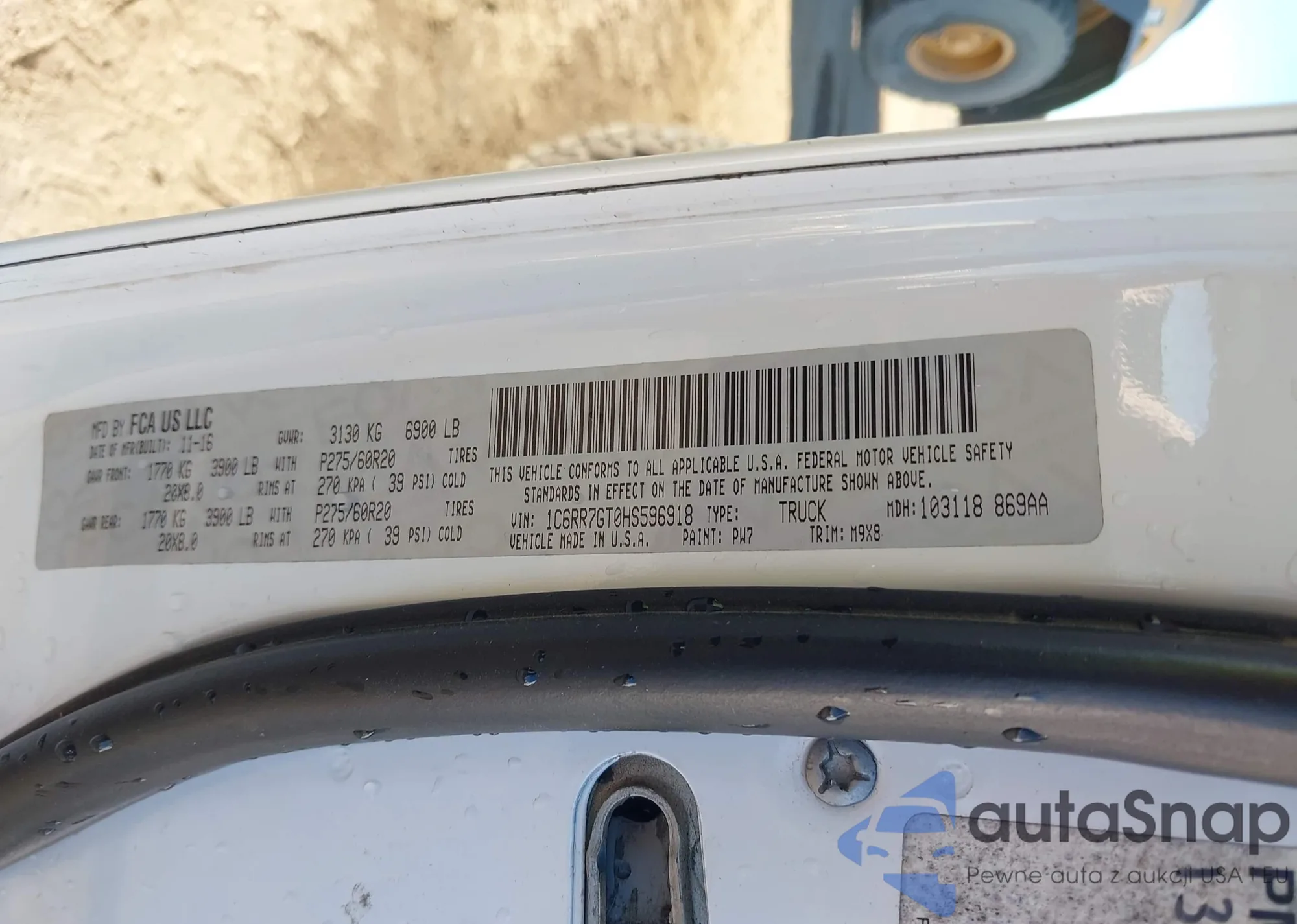 • VIN 1C6RR7GT0HS596918