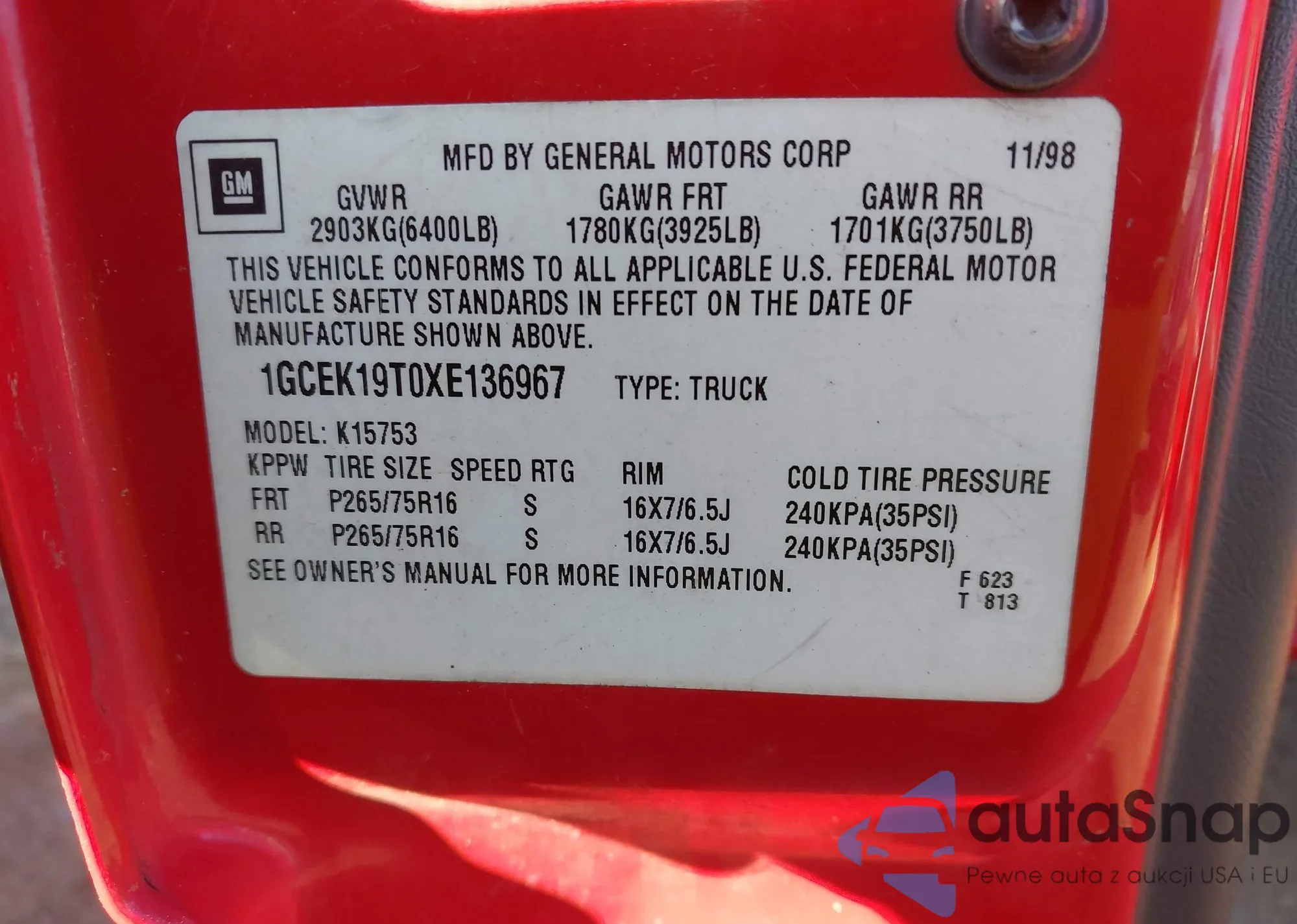 LOT: 43554697 VIN: 1GNDM19W8XB115485