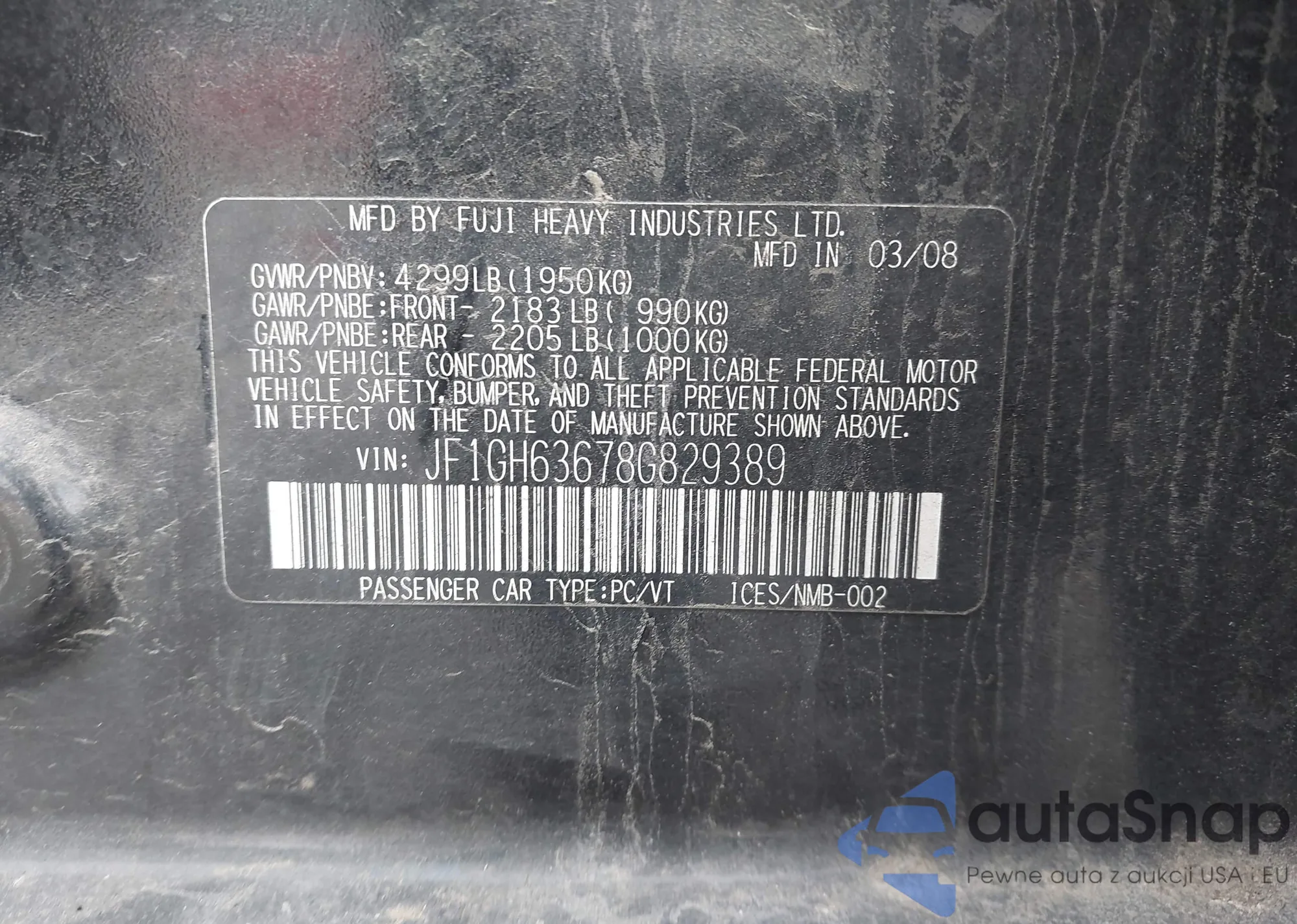 LOT: 43548901 VIN: JF1GH63678G829389