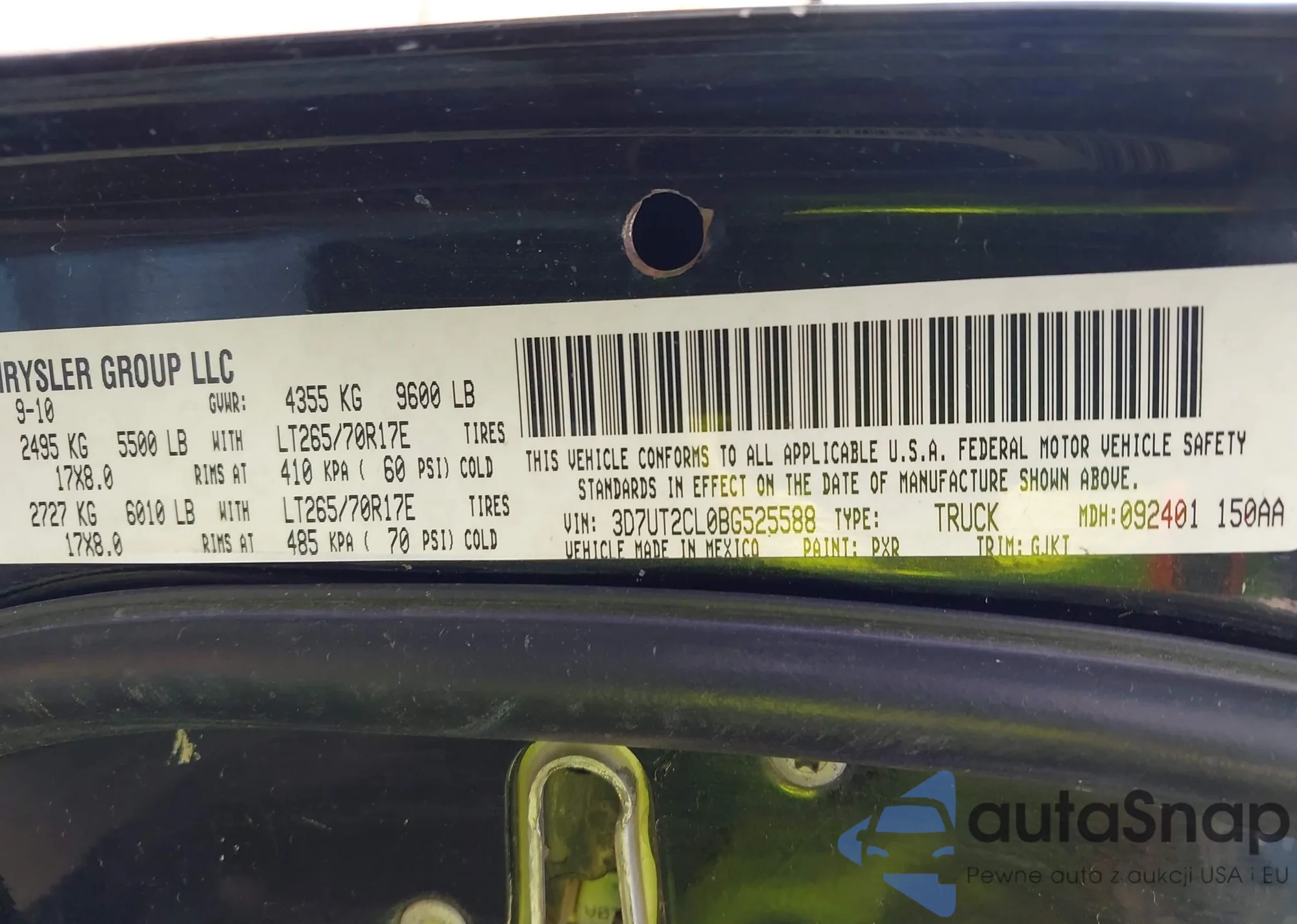 • VIN 3D7UT2CL0BG525588
