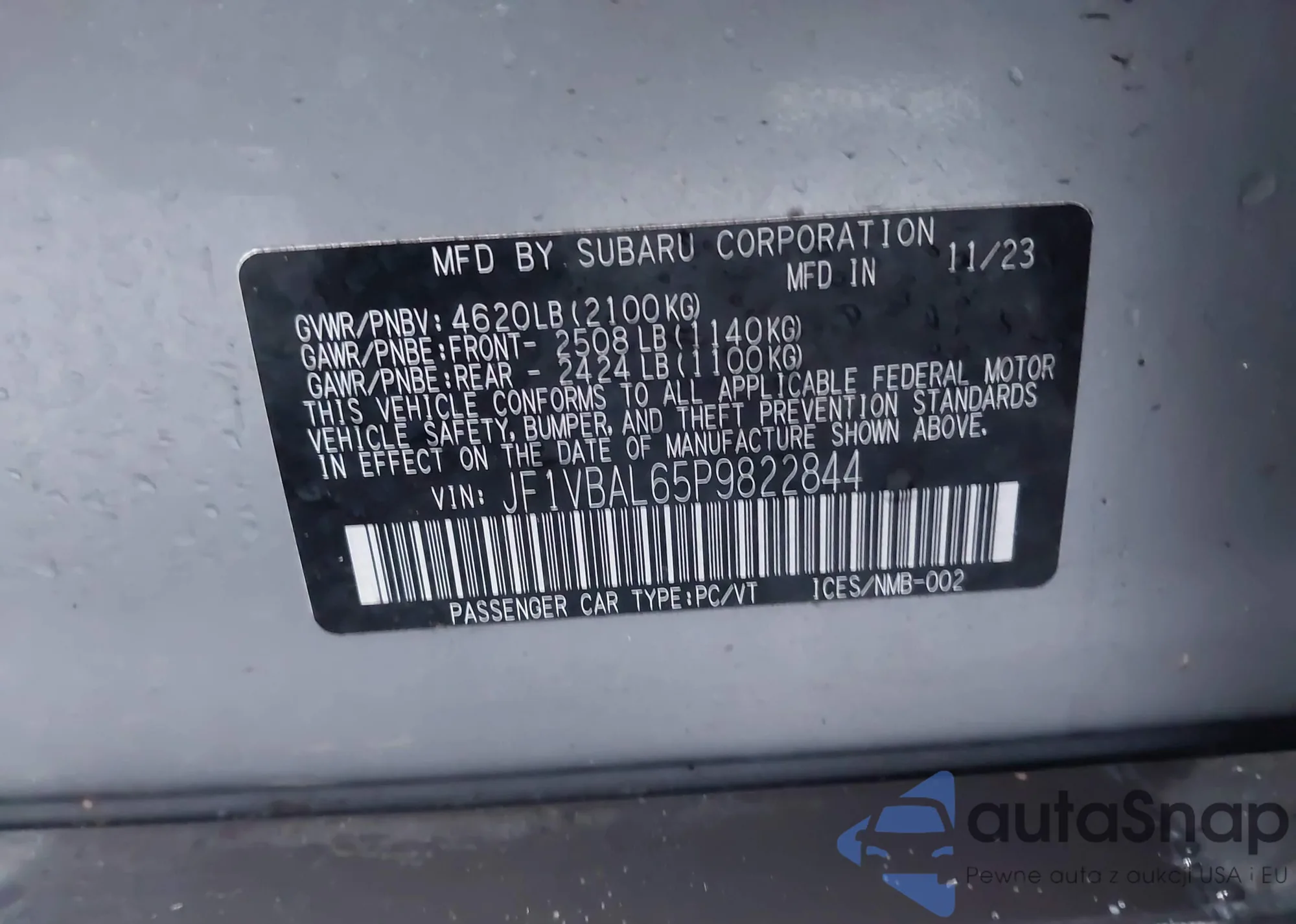 • VIN JF1VBAL65P9822844