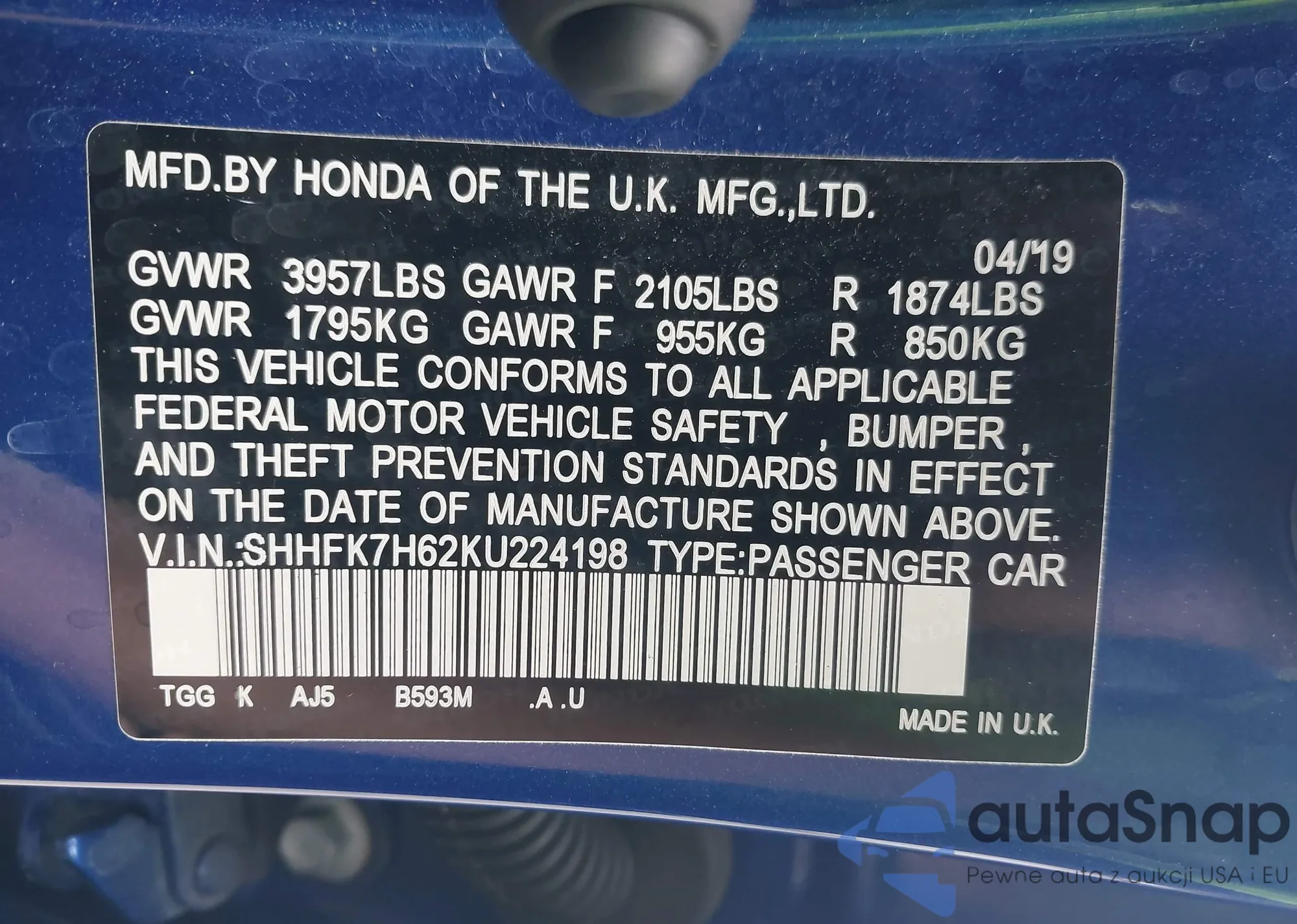 • VIN SHHFK7H62KU224198