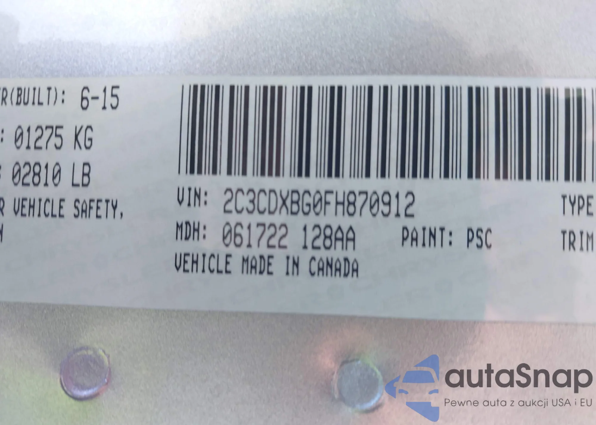 • VIN 2C3CDYAG8CH176729