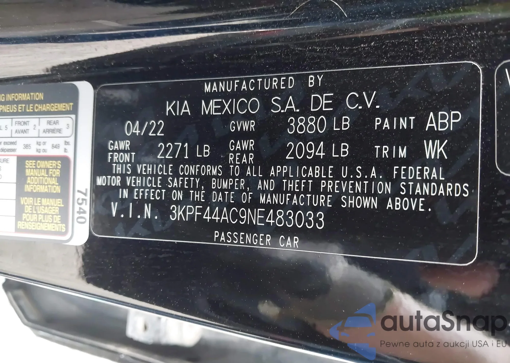 • VIN 3KPF44AC9NE483033