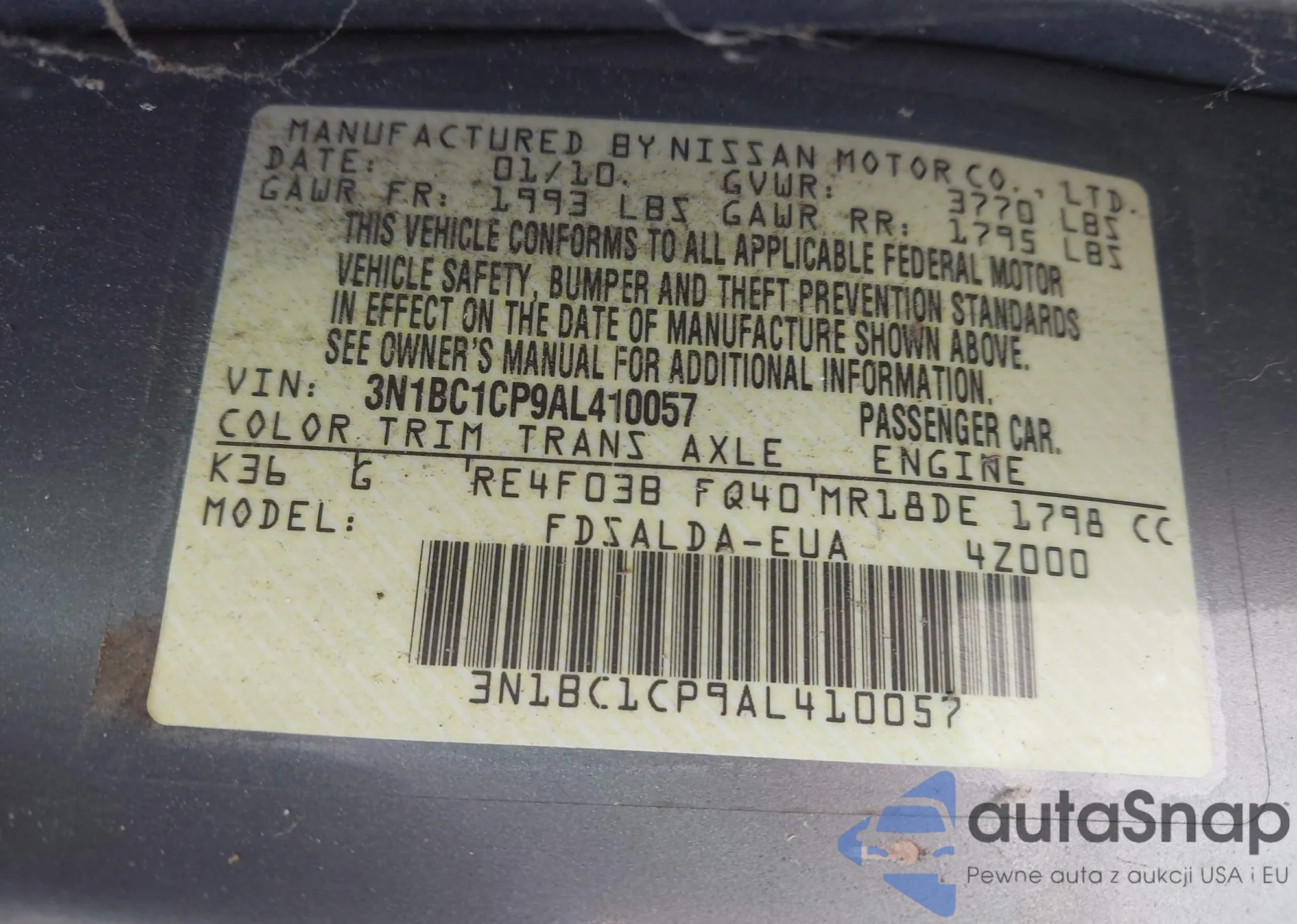 • VIN 1N4AL2AP5CC104611