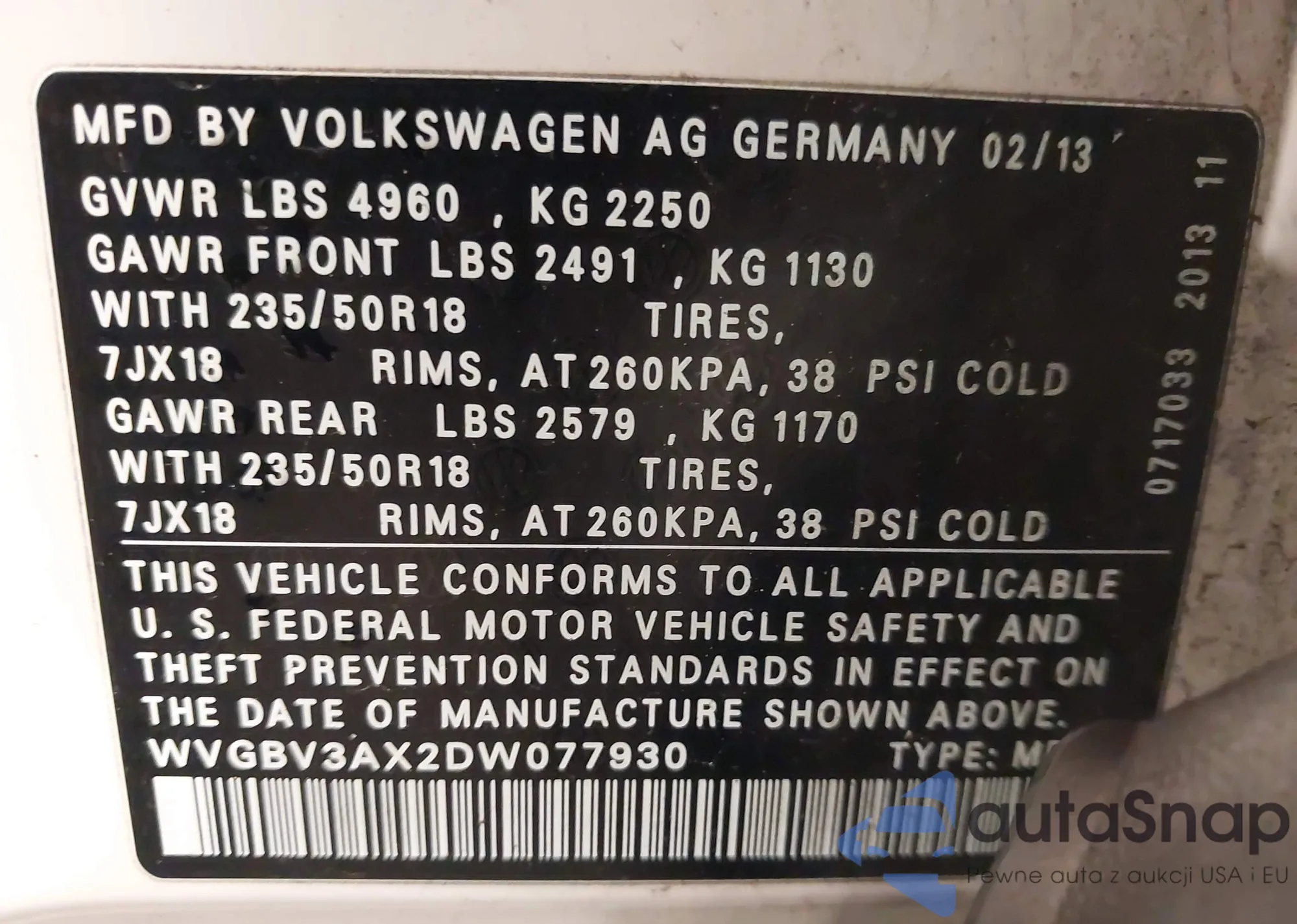 • VIN 1VWAT7A35FC044920