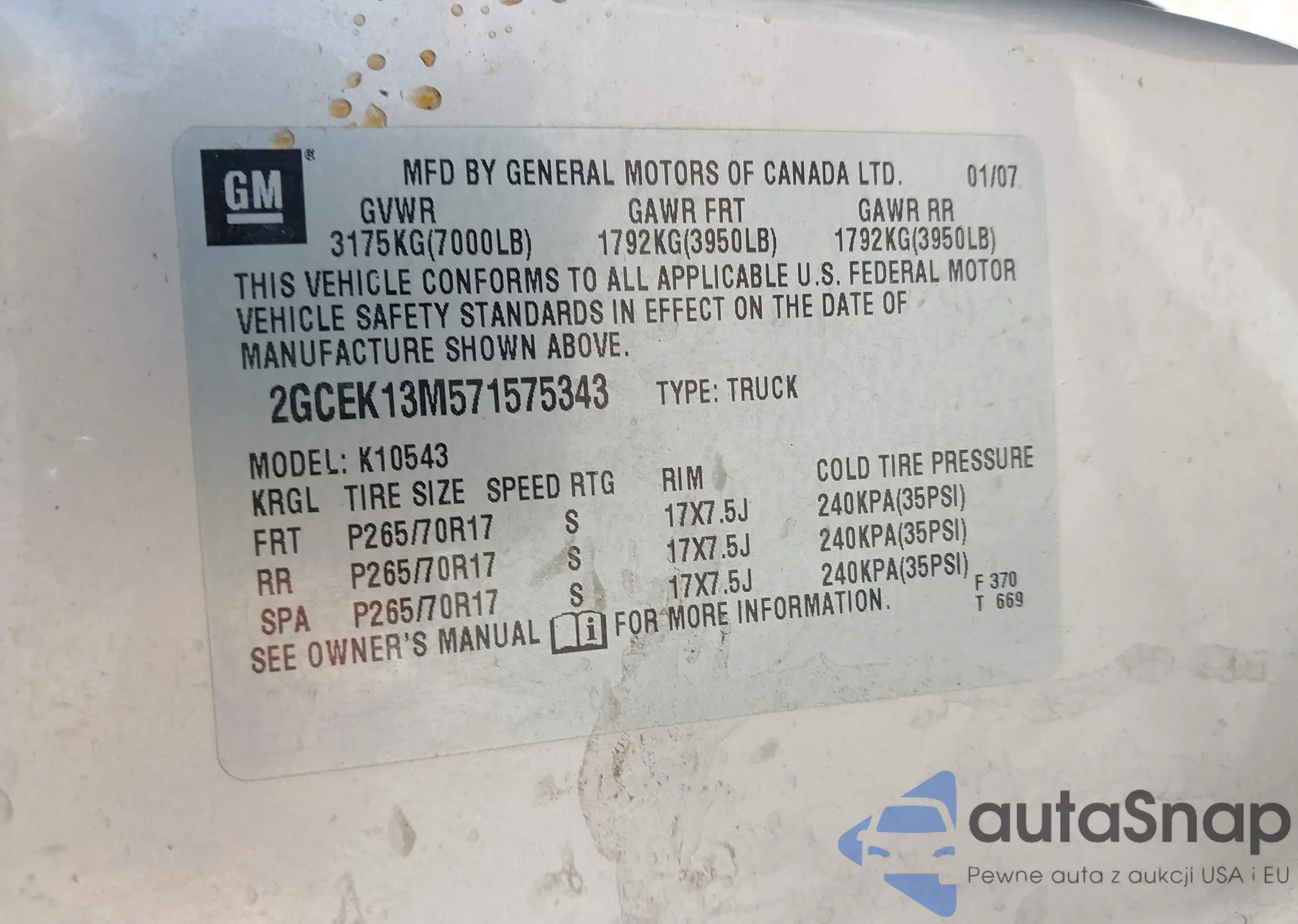 • VIN 2GCEK13M571575343