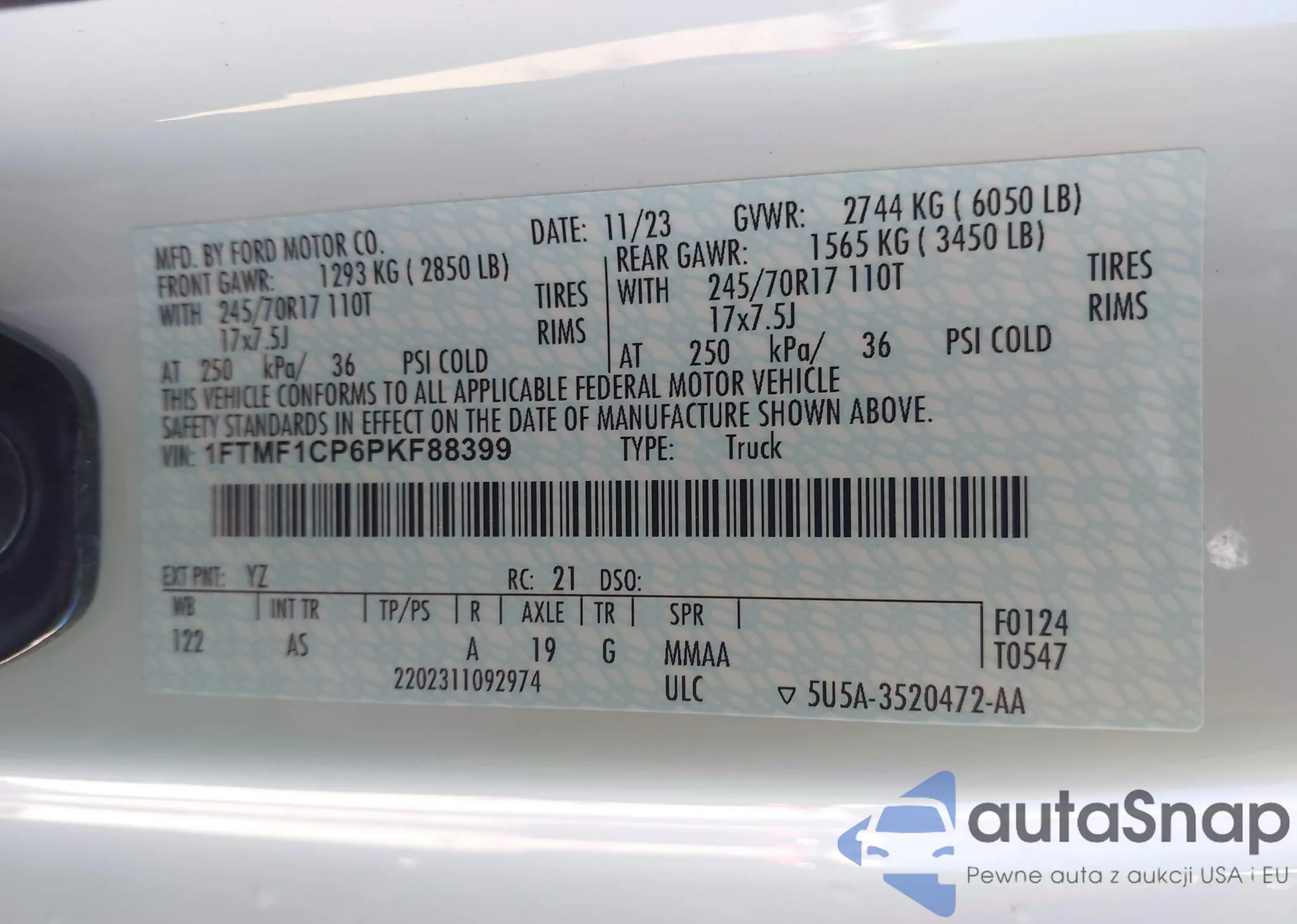 LOT: 43355889 VIN: 1FTMF1CP6PKF88399
