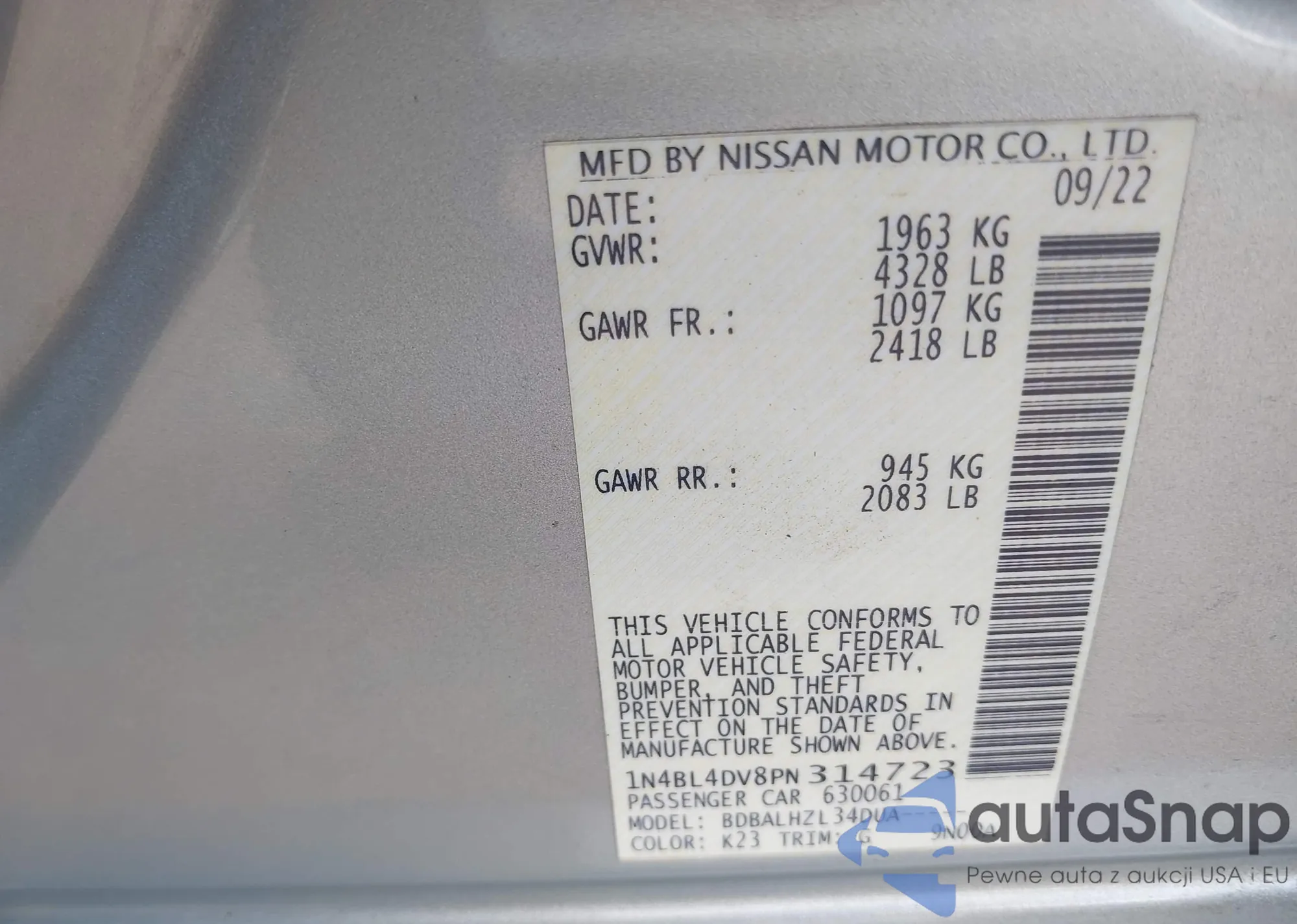 • VIN 5N1AZ2MG6HN104614