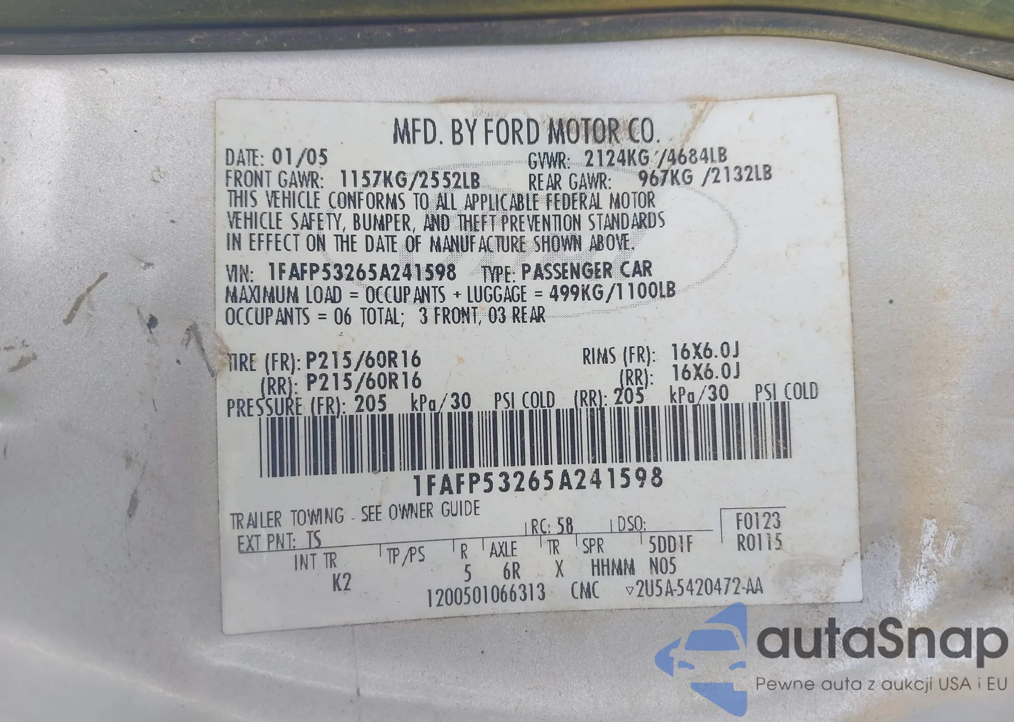 • VIN 2G1WA5EN8A1125402