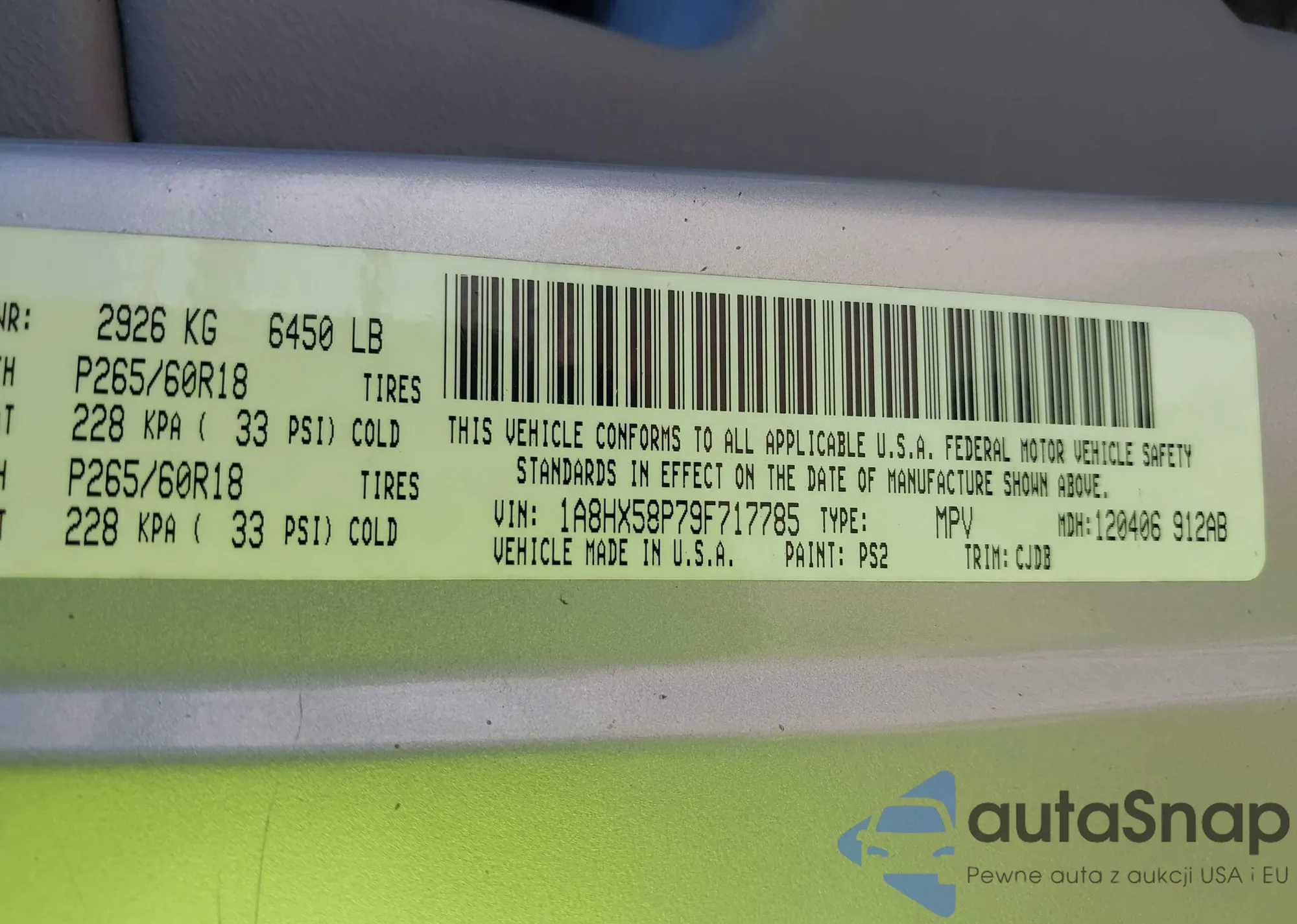 • VIN 1A8HX58P79F717785
