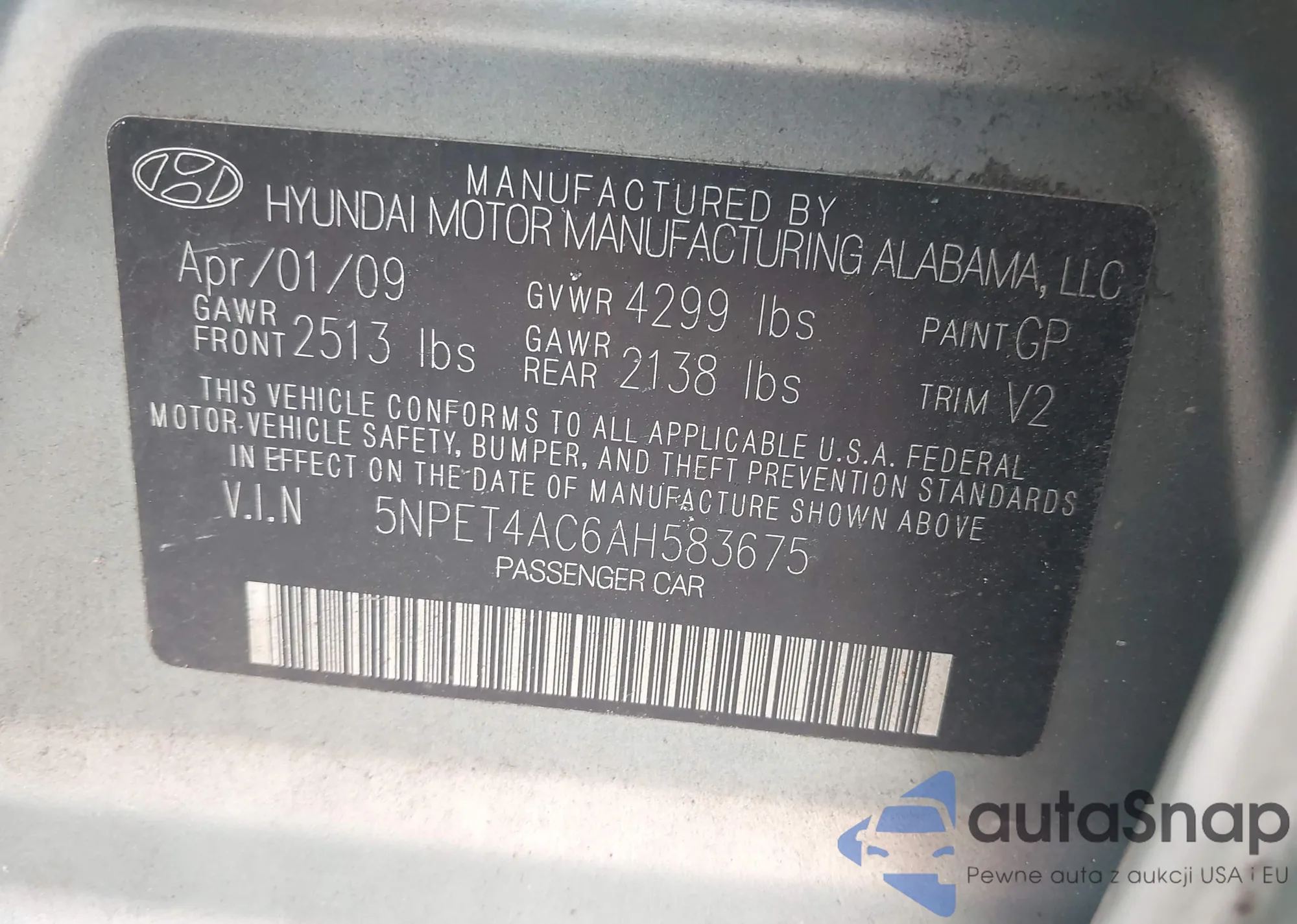 • VIN 5XYKT4A23DG338547