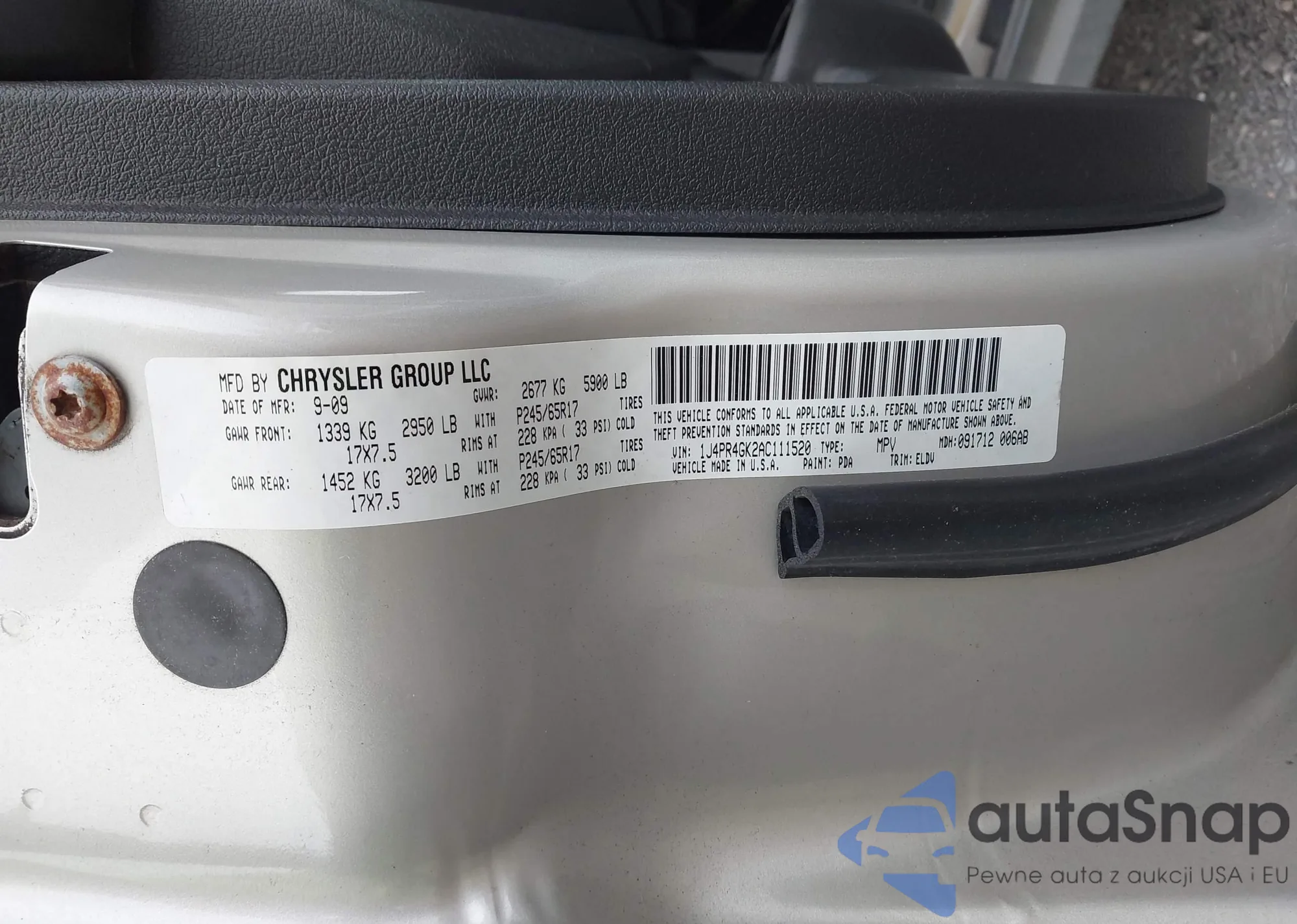 • VIN 1J4PR4GK2AC111520
