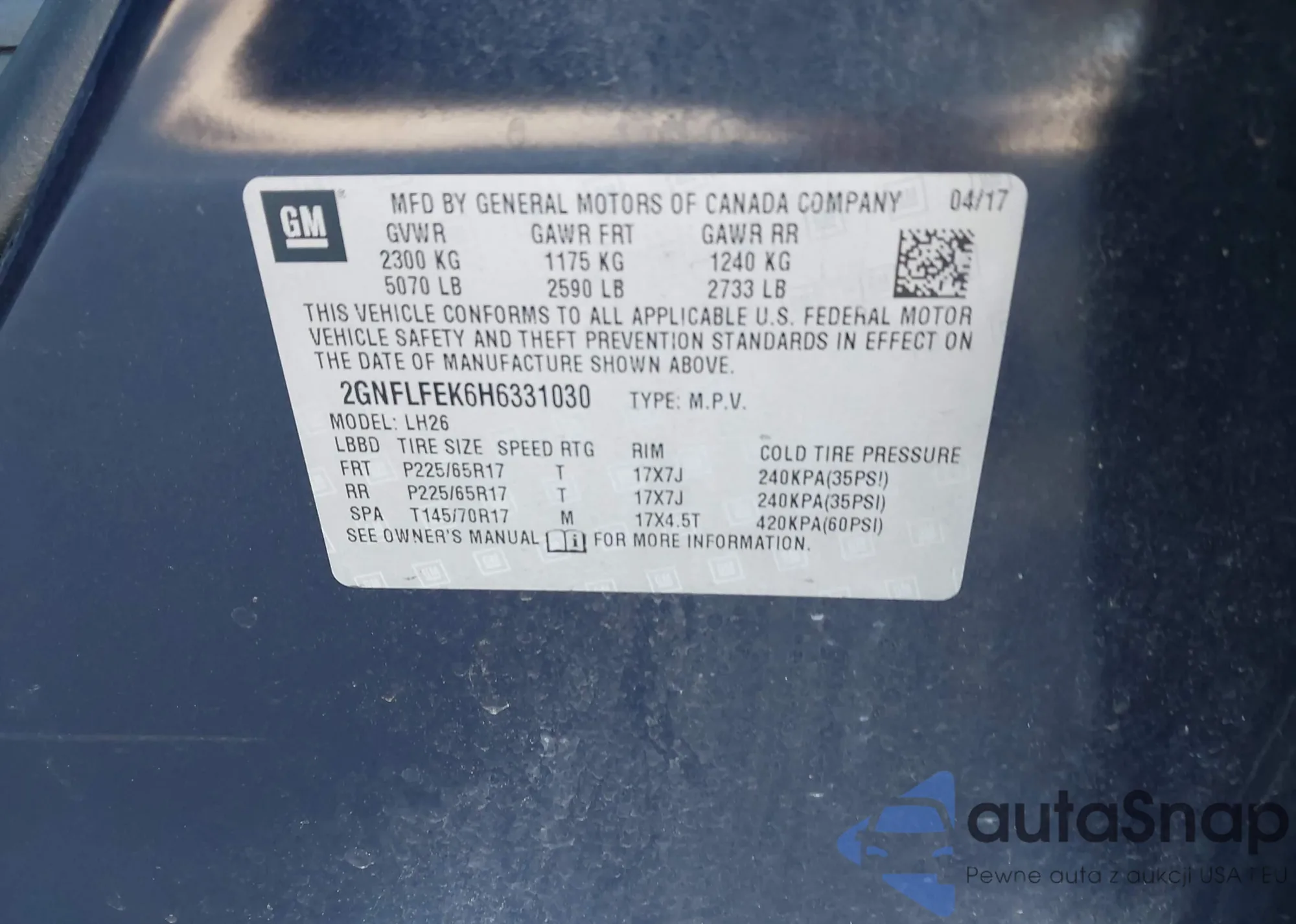 • VIN 2GNFLFEK6H6331030