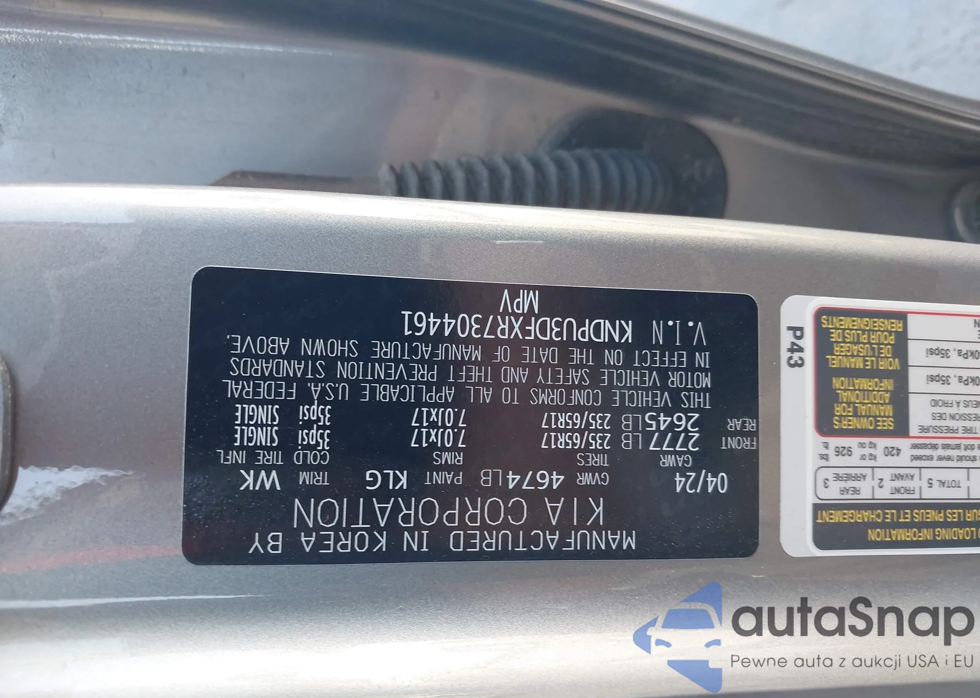 • VIN KNDPU3DFXR7304461