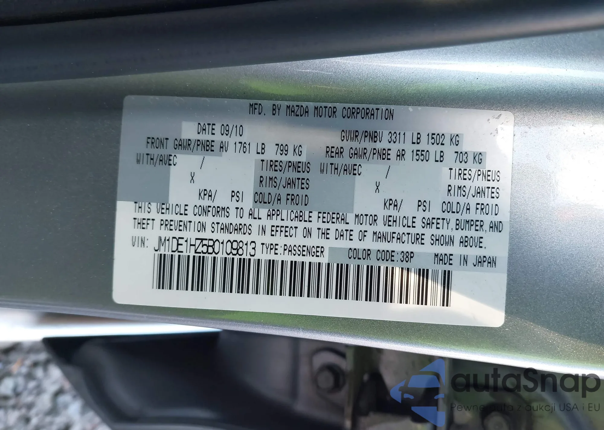 LOT: 43497018 VIN: JM1DE1HZ5B0109813