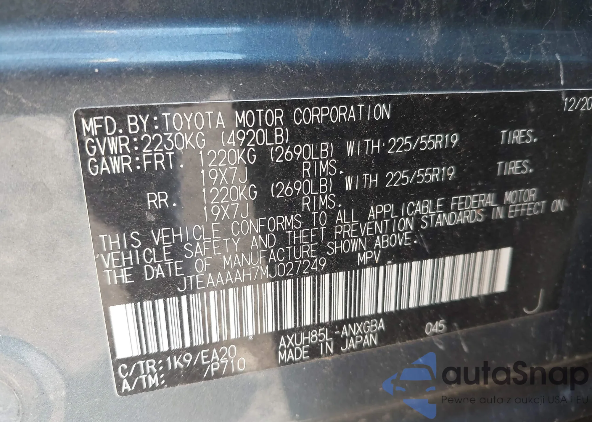 • VIN JTEAAAAH7MJ027249