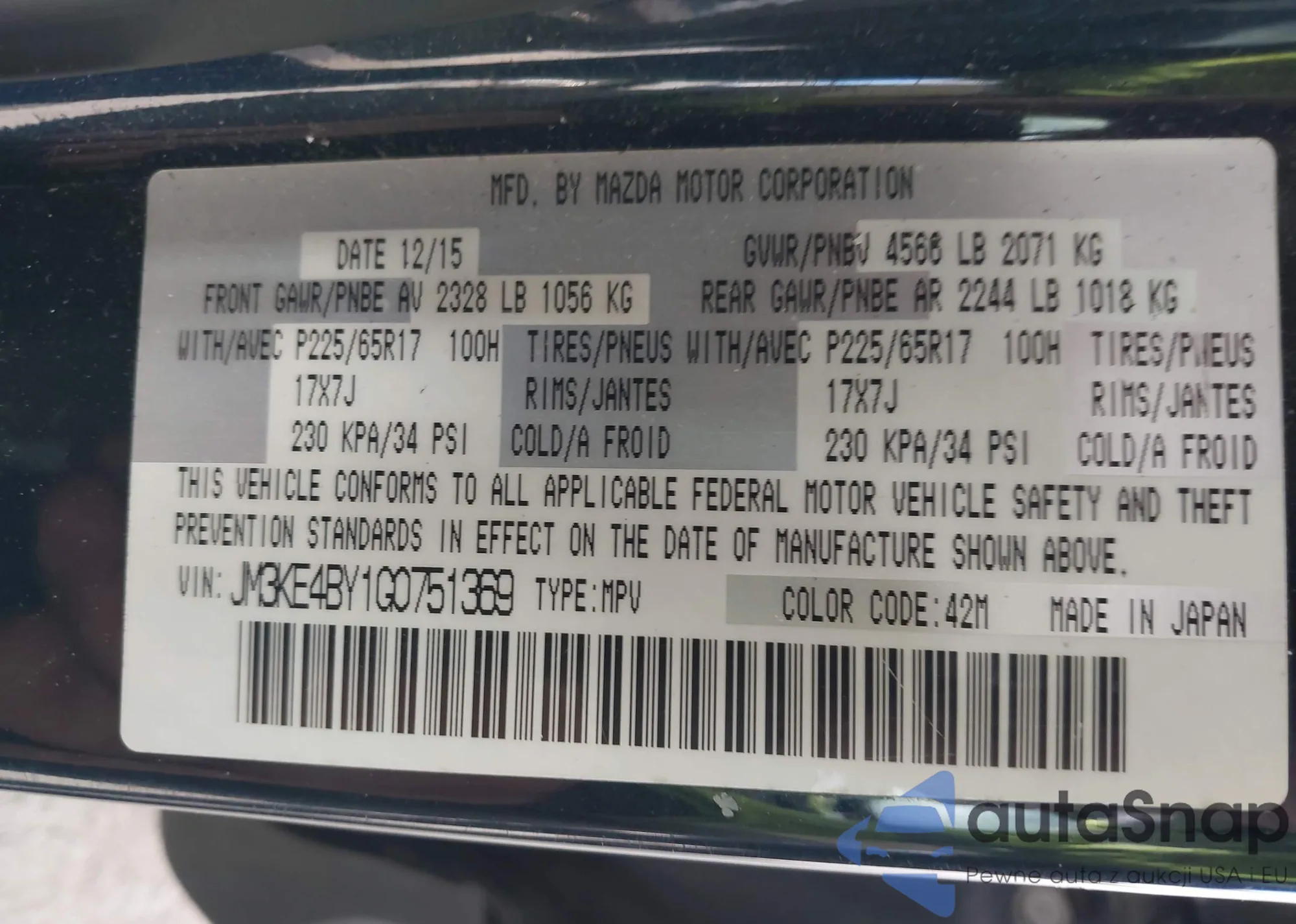 LOT: 43579410 VIN: JM3KE4BY1G0751369
