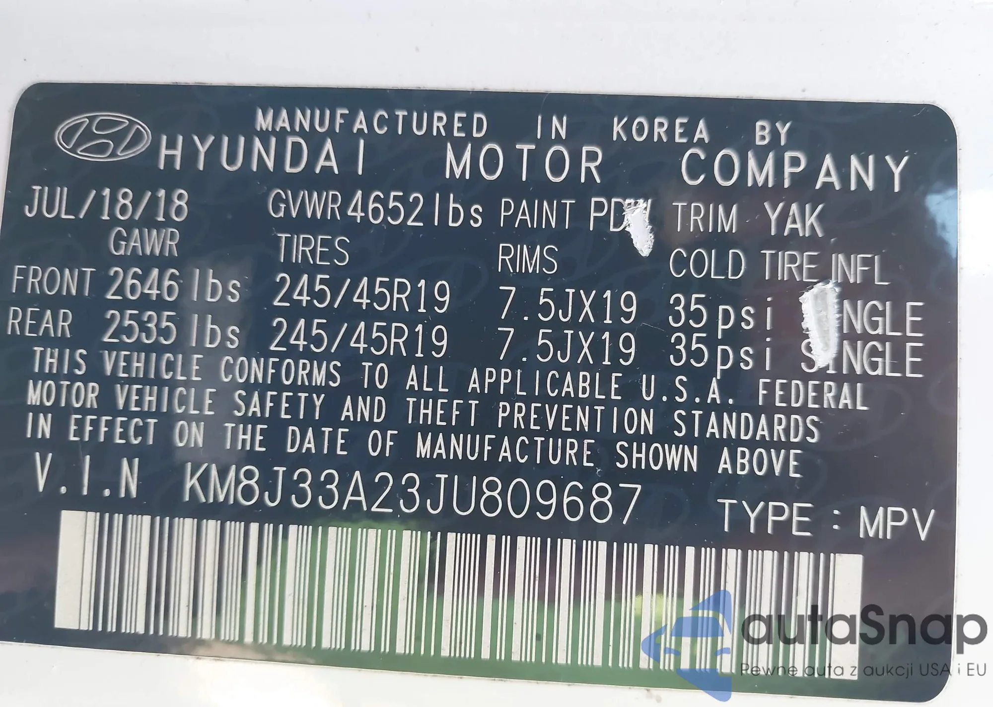 • VIN KM8J33A23JU809687